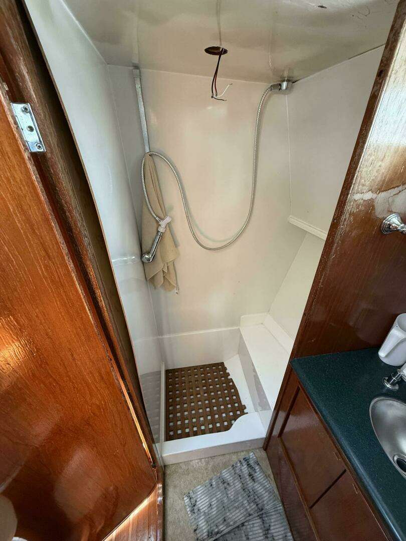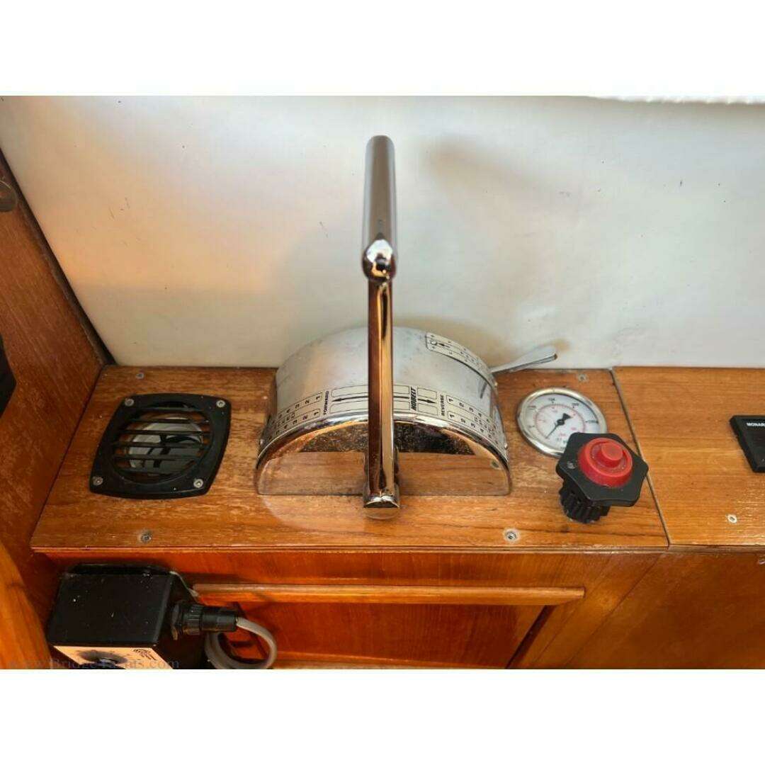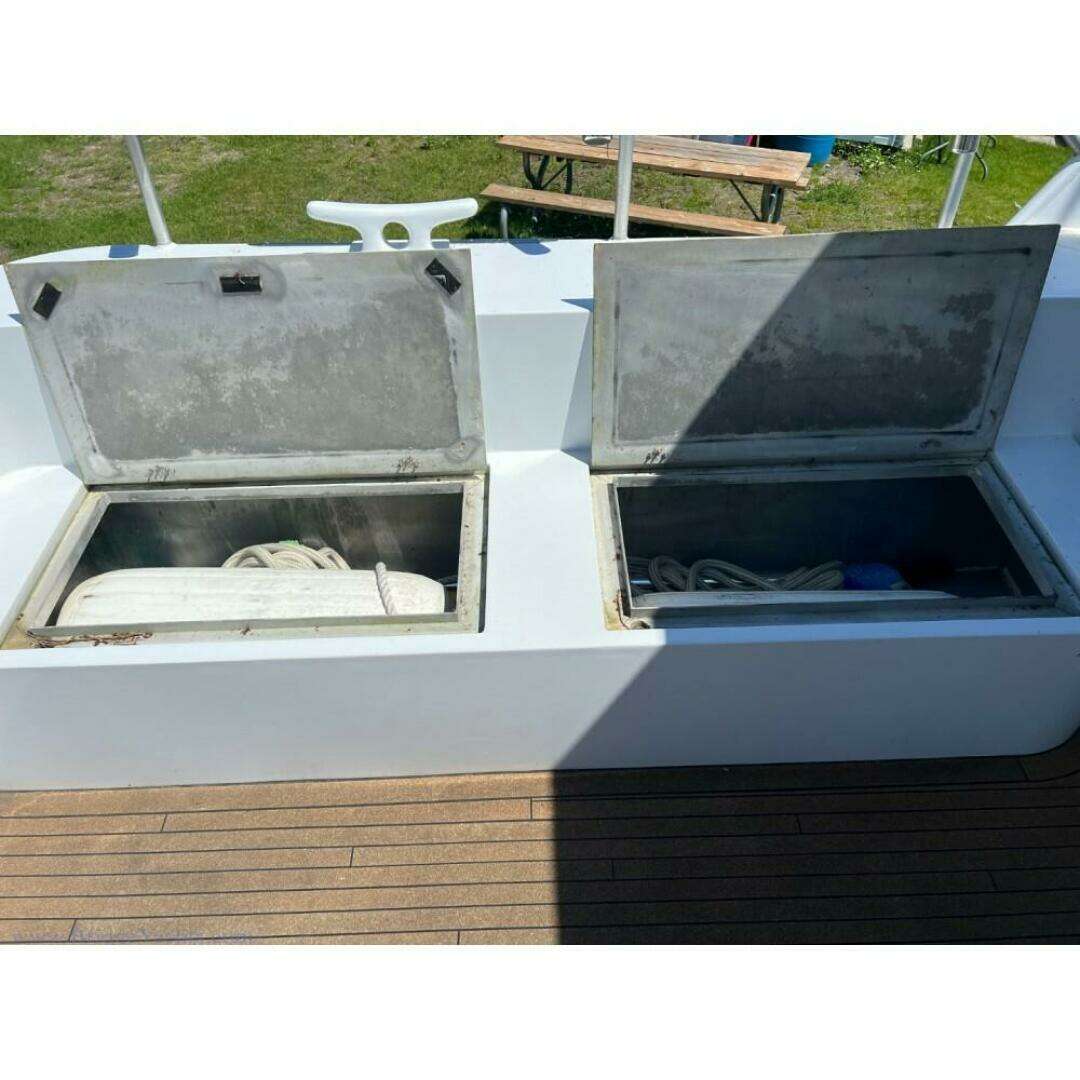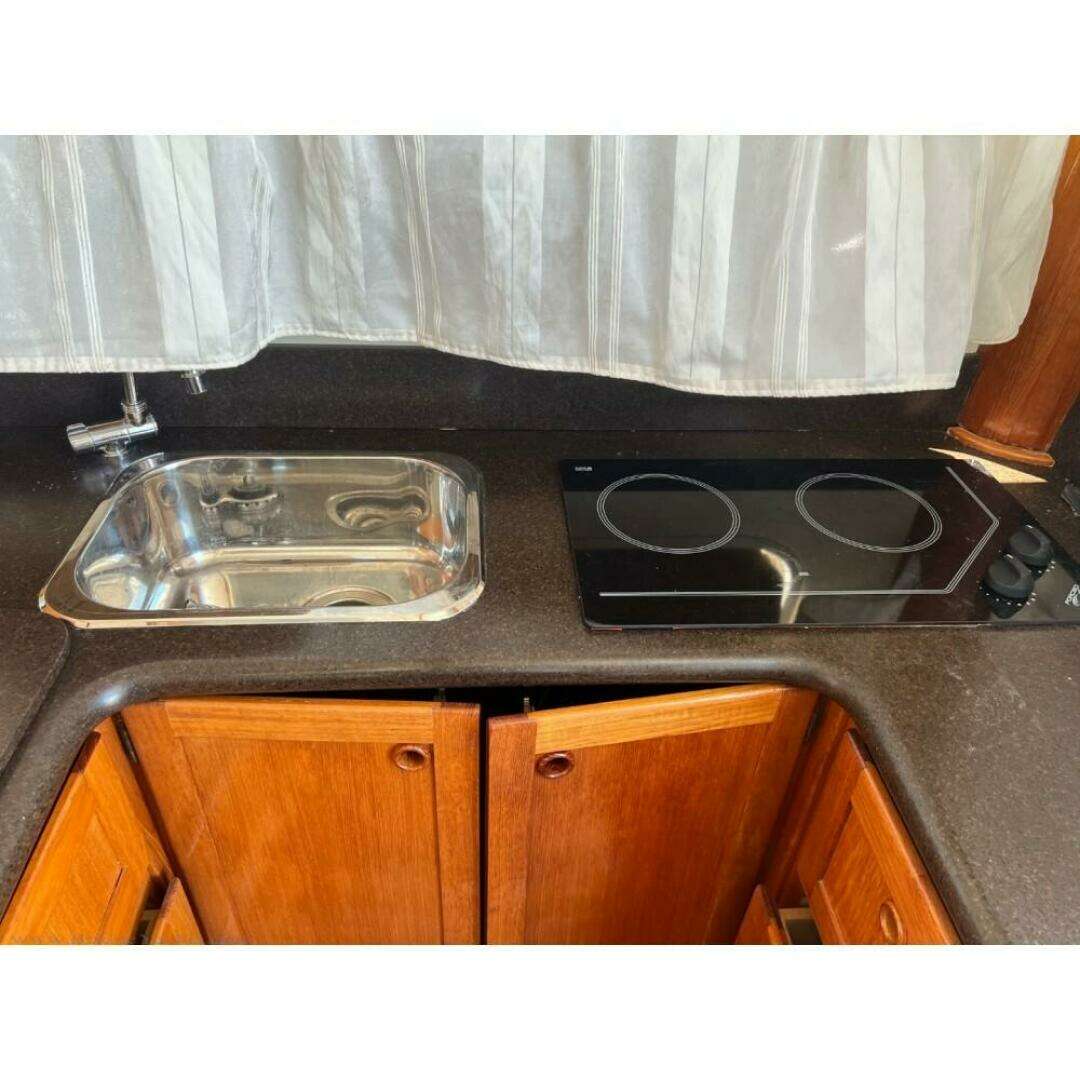 The interior and accommodation space are finished wood mahogany decking, cabinetry,
