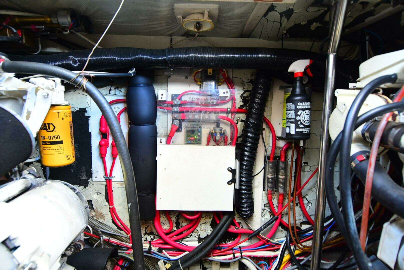 Engine room access is excellent through an electrically operated engine hatch that lifts to expose all. Racor filters and