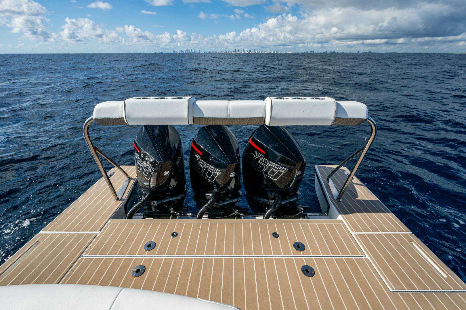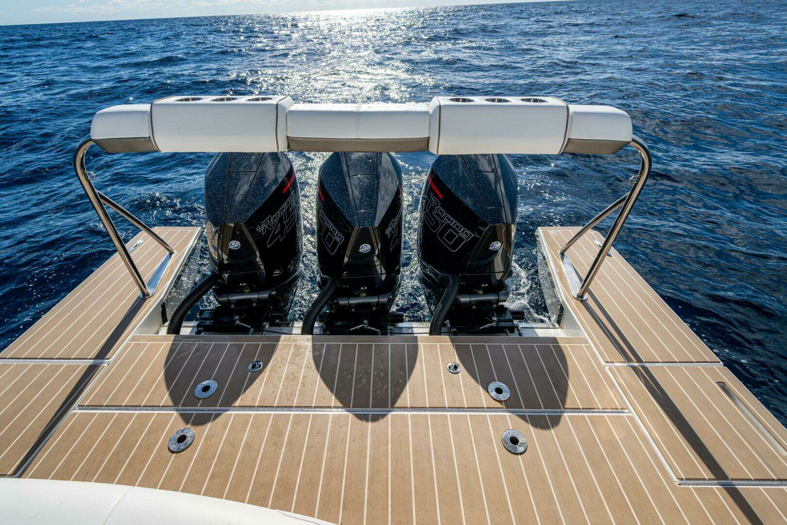 - Triple Mercury Racing 450R Outboards with Joystick Piloting