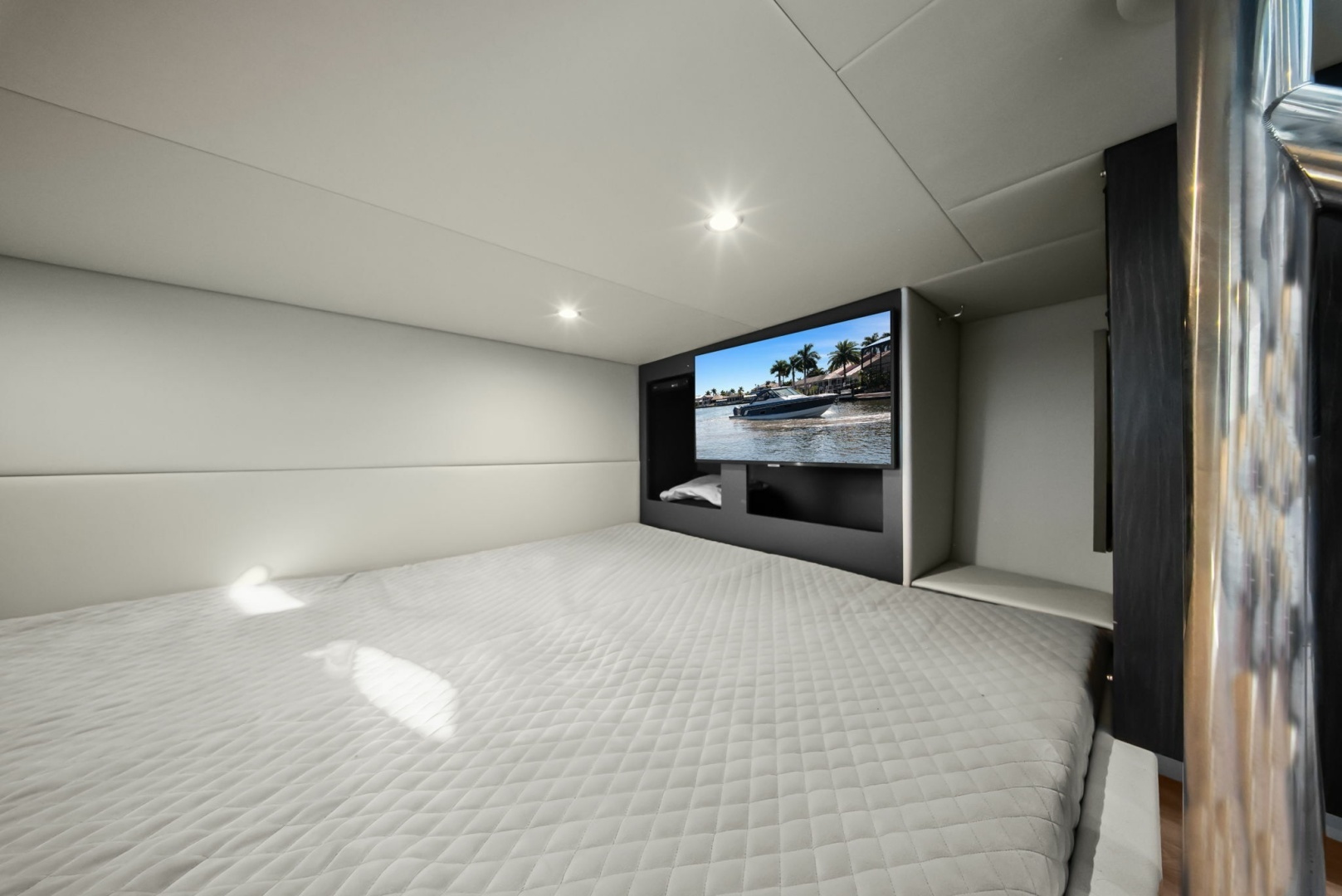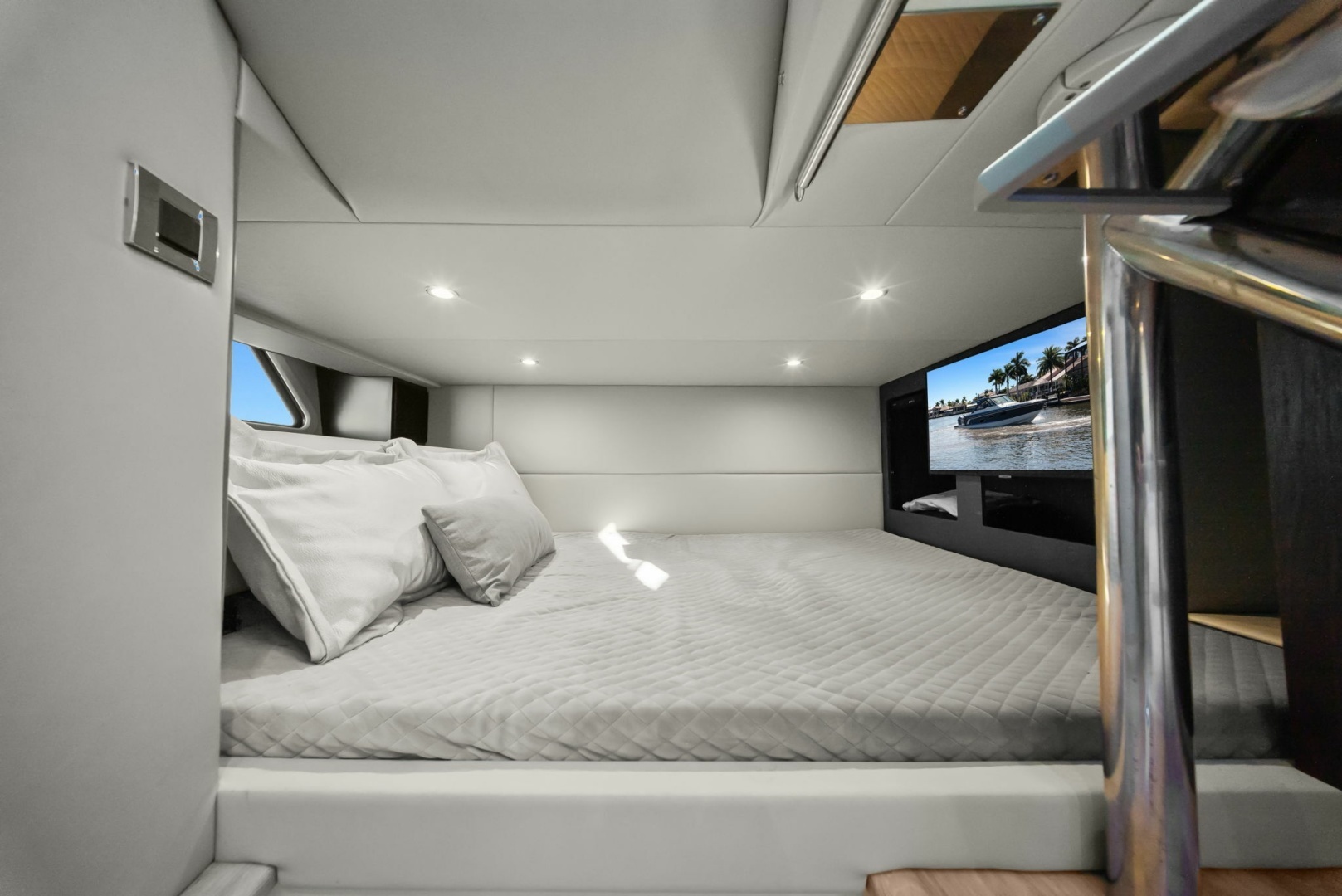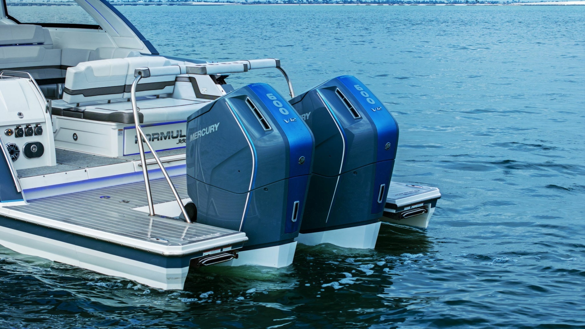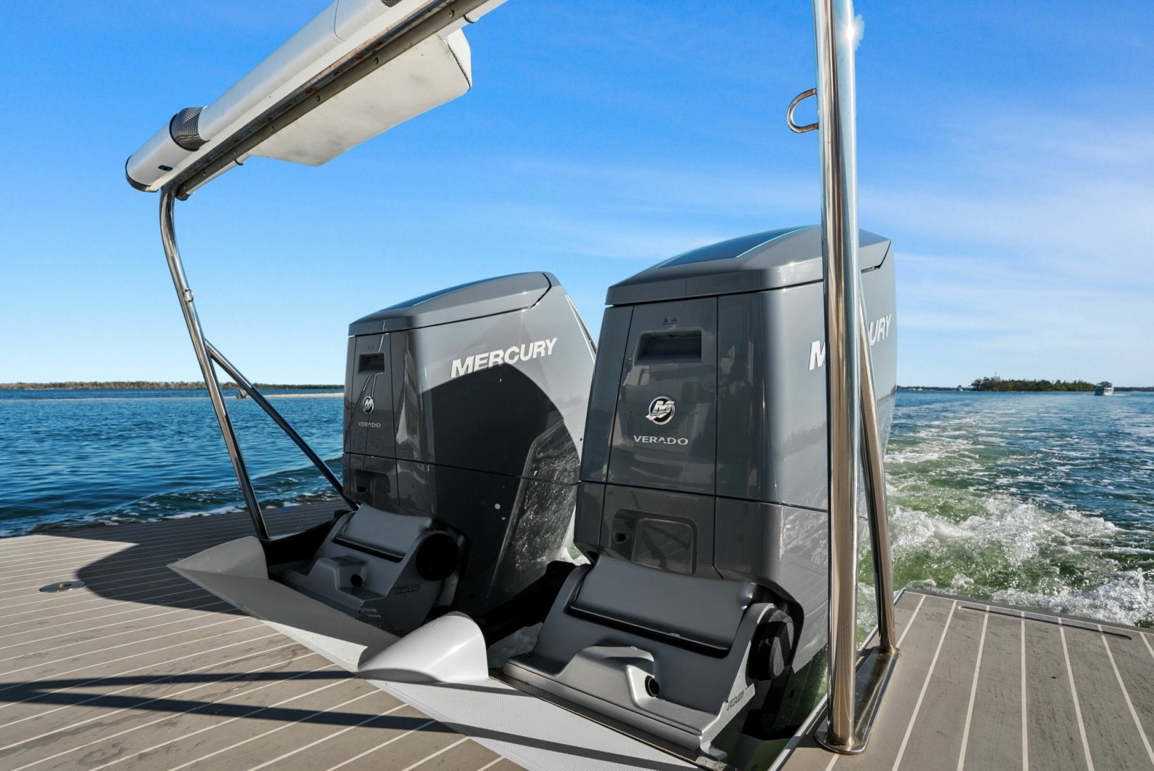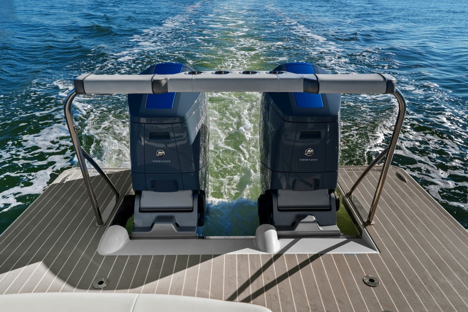 - Low hours: 140 on twin Mercury V12 600hp Verado outboards.