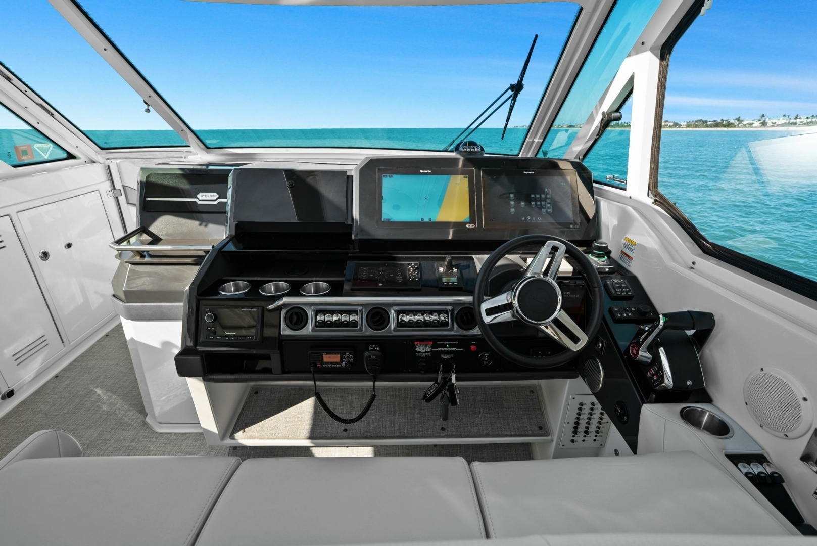 - Raymarine radar and FLIR camera provide advanced situational awareness in all conditions.