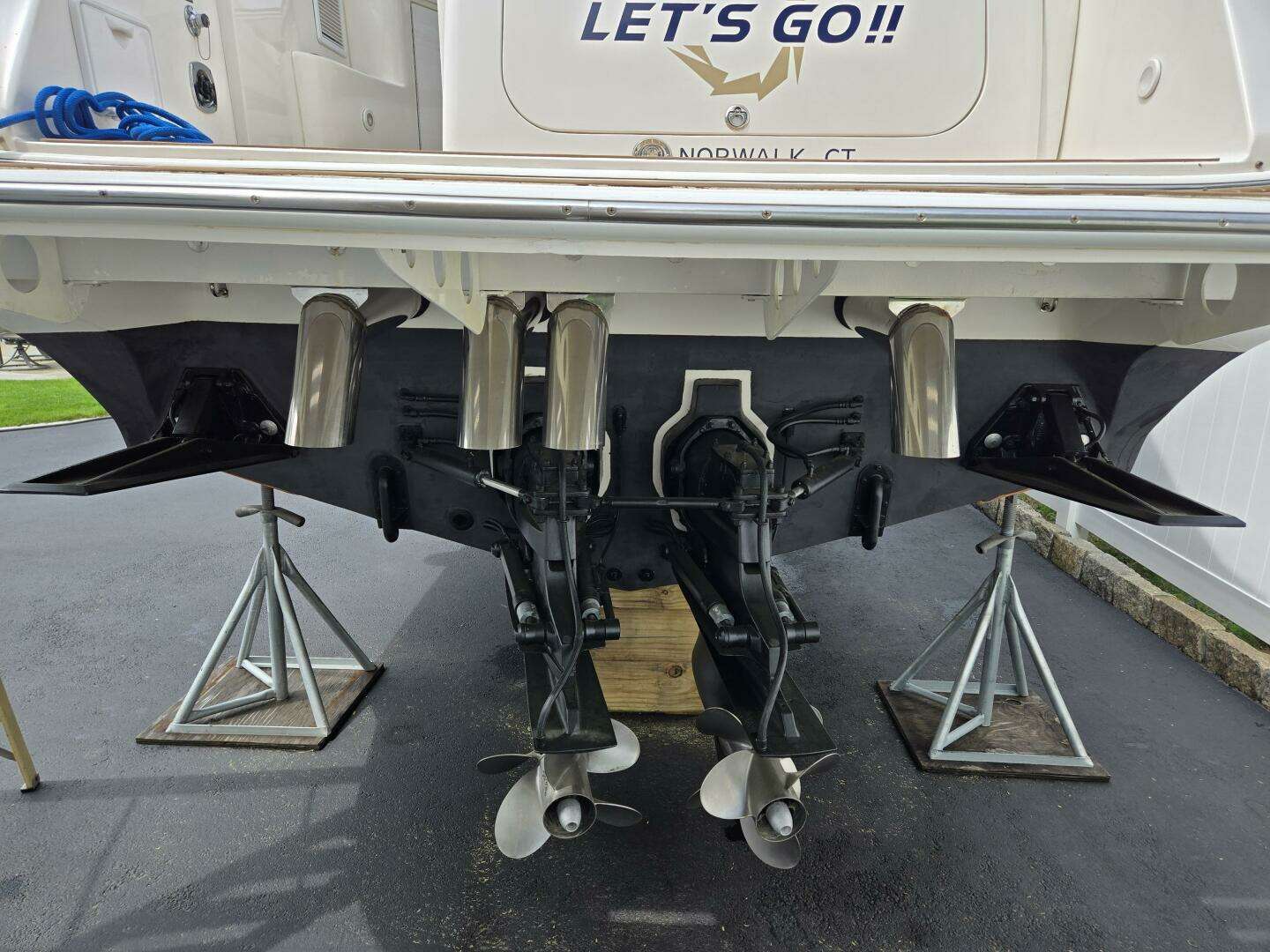 A highly desirable and classic Fountain 38 Express Cruiser with the open cabin layout and limited production staggered motor configuration lovingly restored and upgraded is now available for sale. With a top speed of 60 mph and most efficient cruising at 42 mph and 3500 RPMs, you can get to your destination quickly, while cruising in style and comfort with cabin and cockpit climate control and top of the line stereo system, and smooth cruising with the deep V stepped hull. Take a day trip to Block Island and be back in time for dinner! The 90 nm trip from Norwalk Harbor, CT to the Great Salt Pond, Block Island, RI takes only 2 hours 15 minutes and burns a mere 63 gallons of gas. Exclusively maintained and rebuilt by her professional marine mechanic owner, no detail has been overlooked. Come take a look and make this one-of-a-kind vessel yours today!