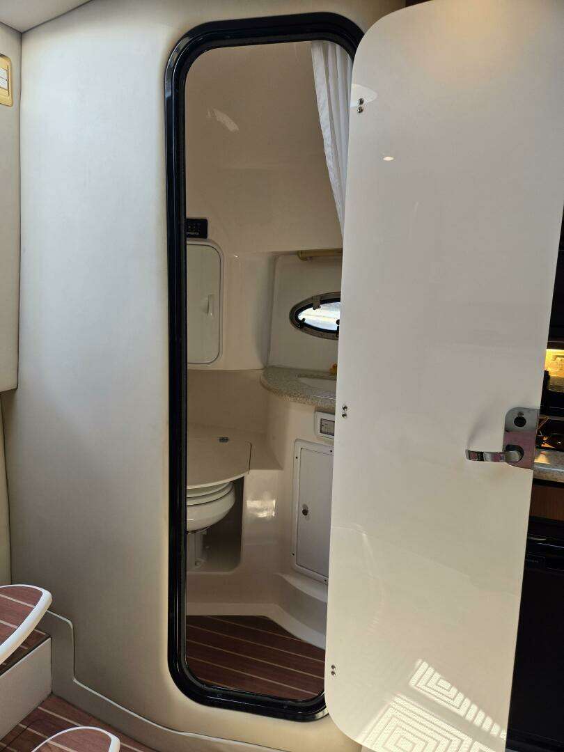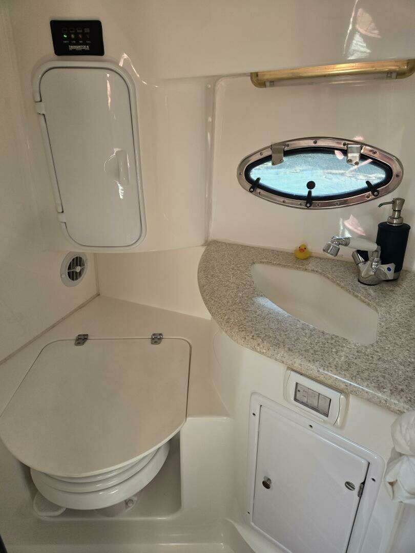 Head with Dometic VacuFlush toilet, sink, and handheld shower