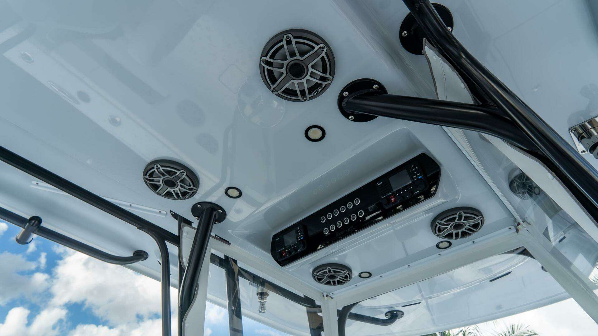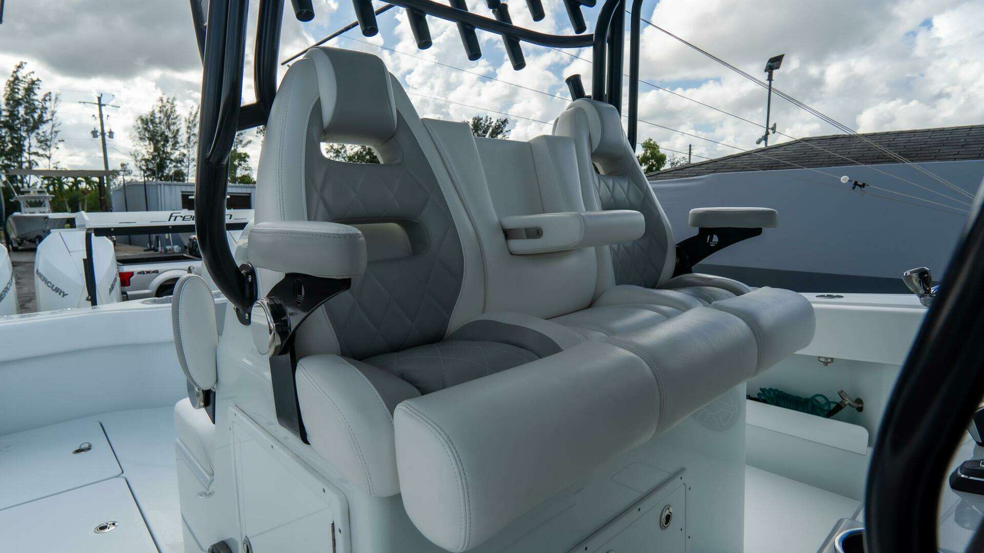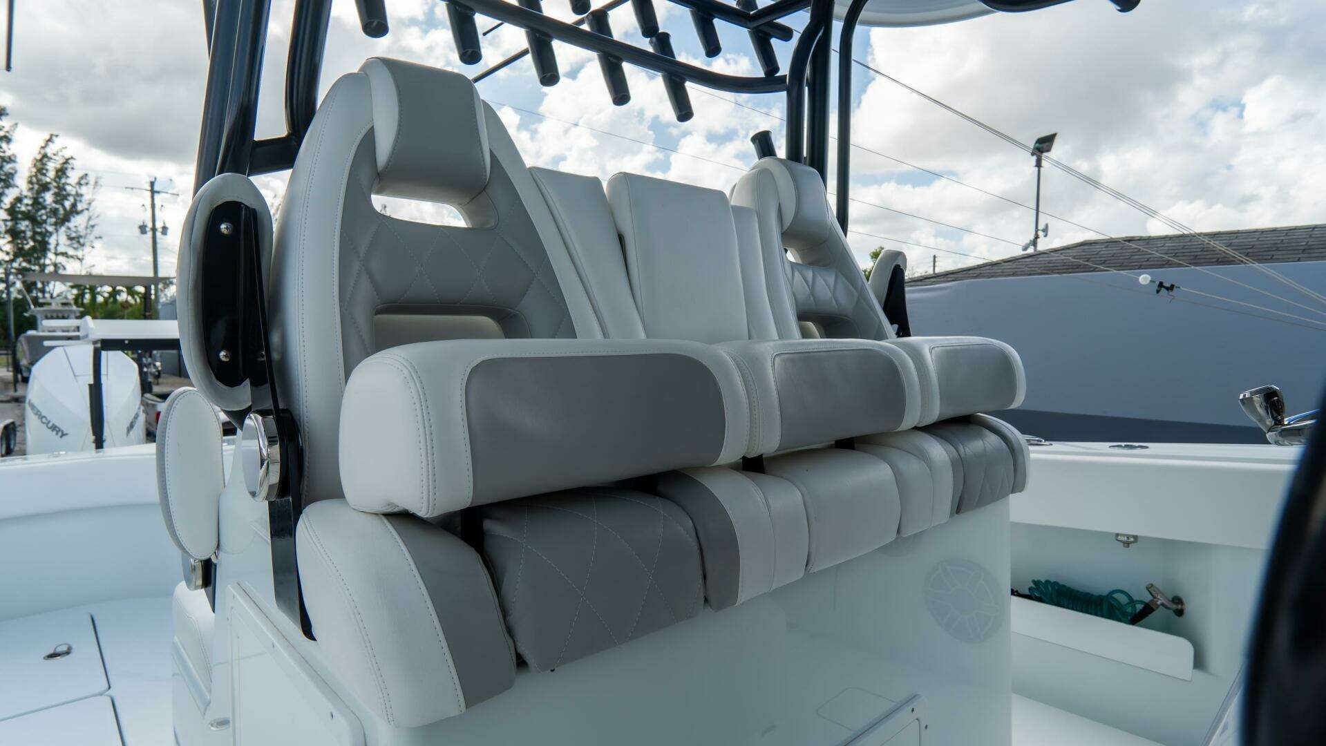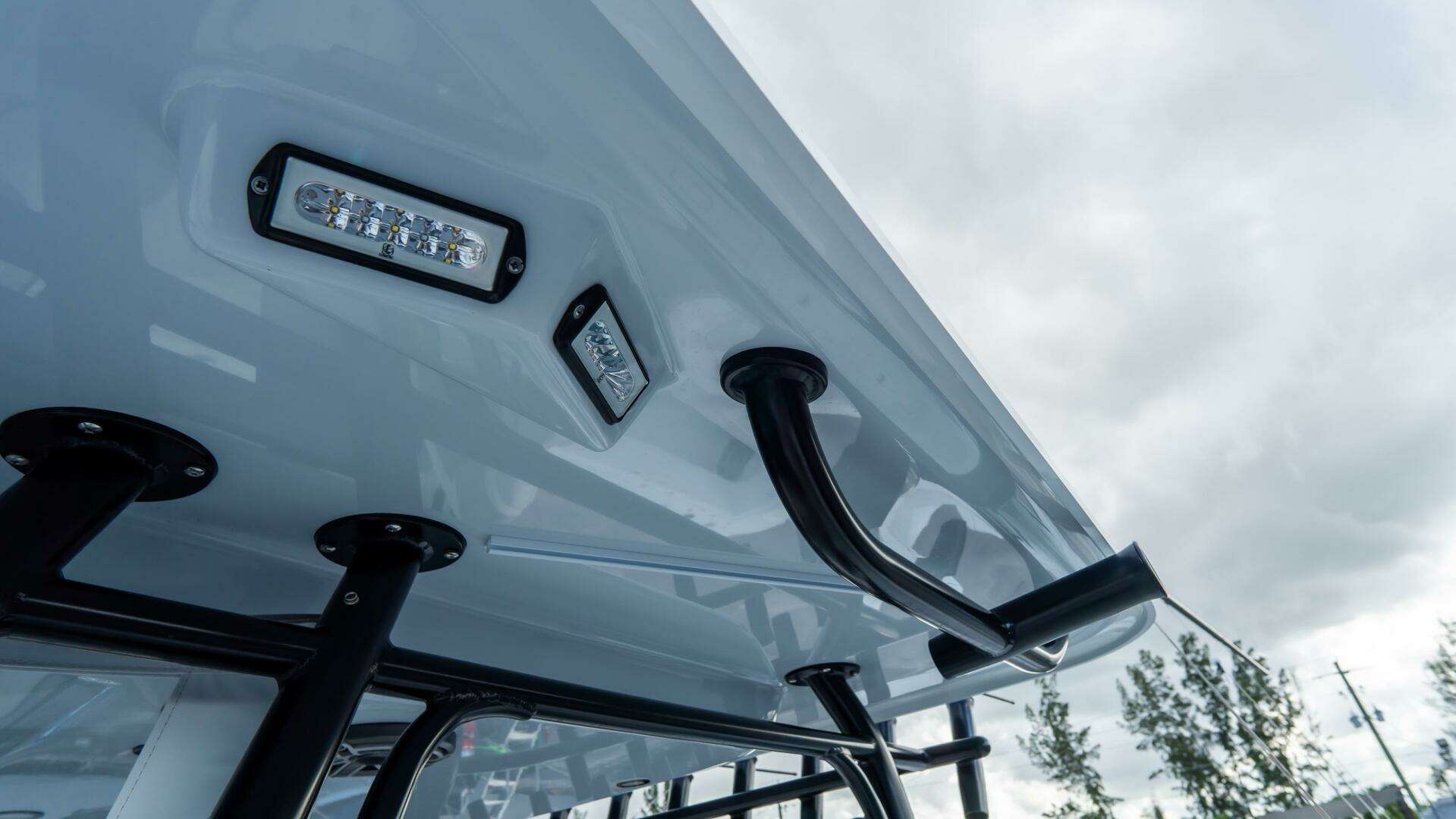 Finished in Whisper Grey with a matching T-top underside and Black powder coating, this boat is loaded with premium options, upgraded electronics, and serious offshore capability.