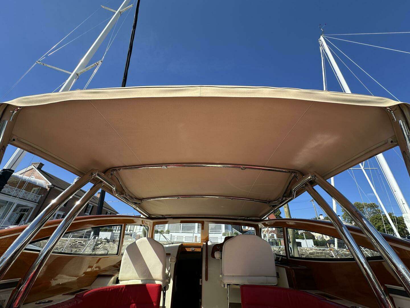 Aft of main cockpit seating area is the hydraulically-deployed and retractable convertible top, which covers the helm and the majority of the cockpit seating area.