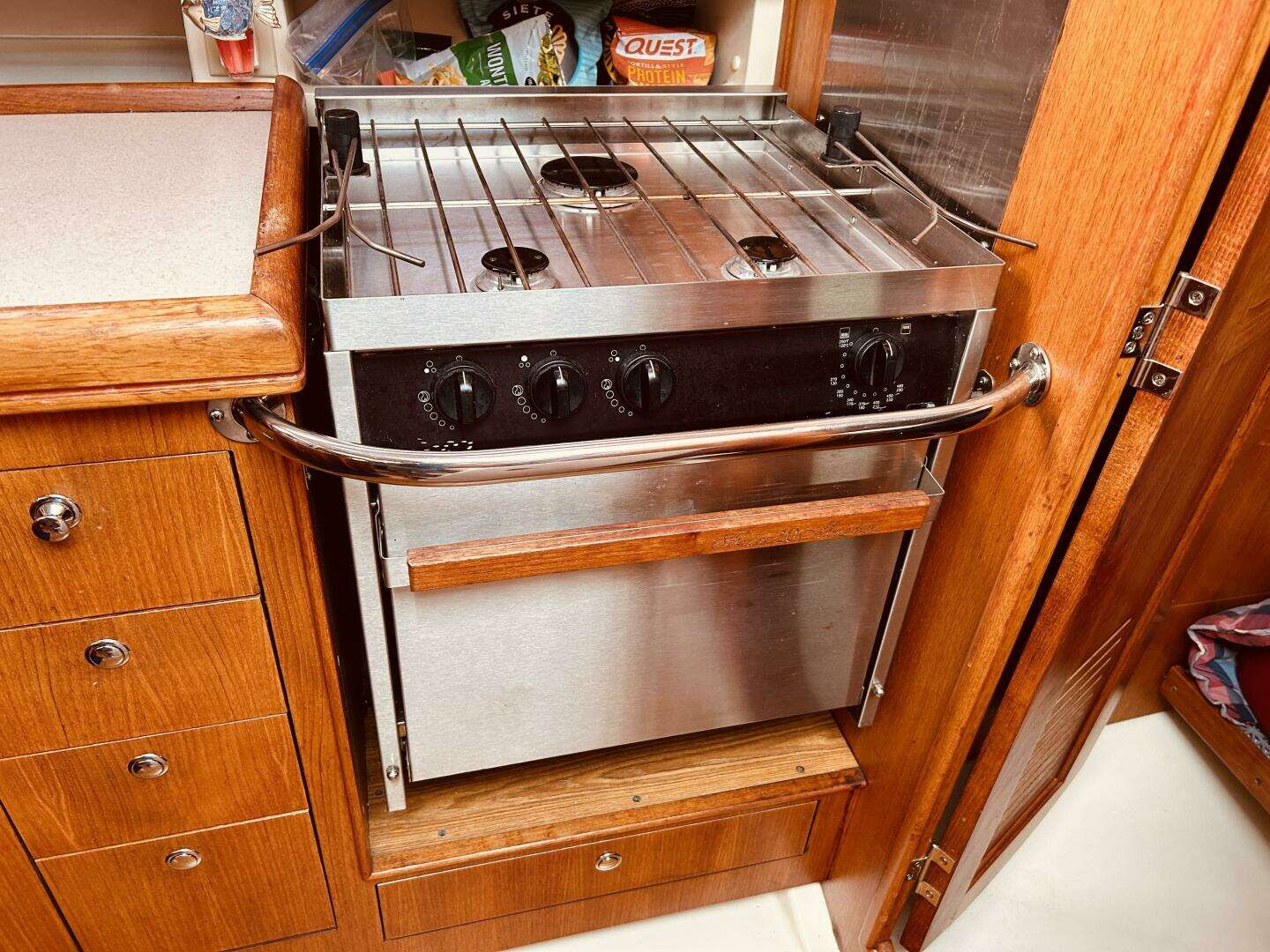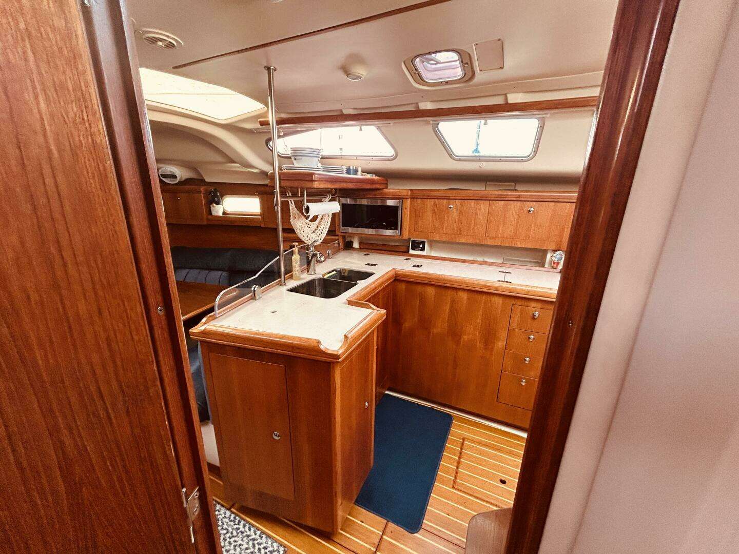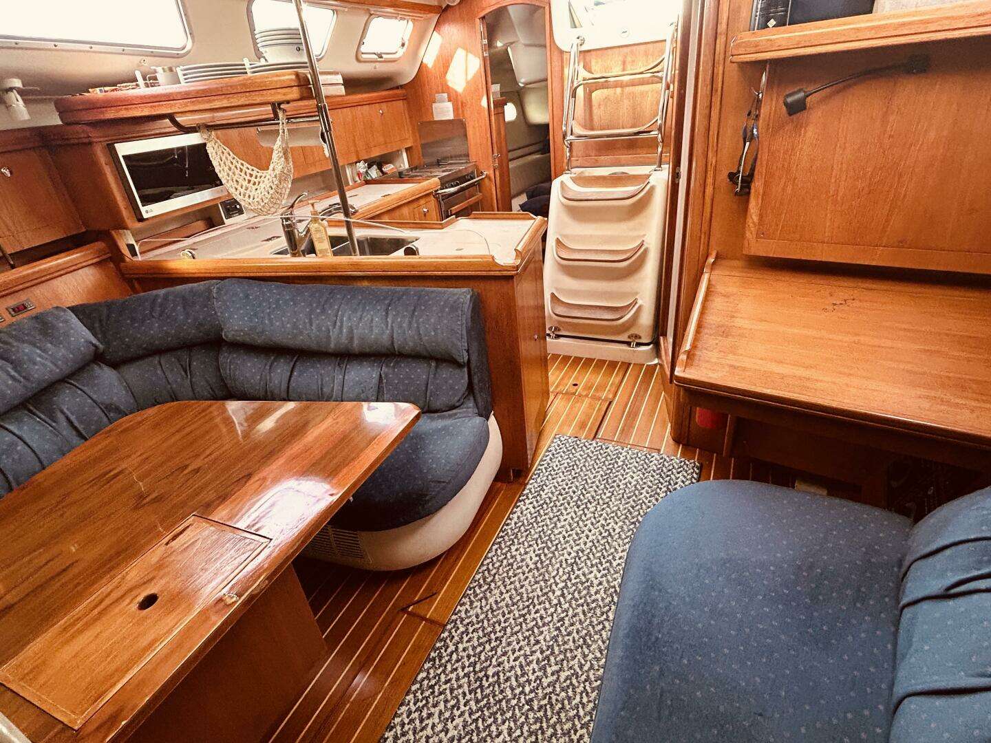 The varnished teak interior is exceptionally clean, comfortable, and well appointed. The (9) deck hatches, several opening ports and large fixed ports on the cabin top provide plenty of light and ventilation, creating a bright and airy interior. The two-stateroom layout offers accommodations for 6 with (2) in the forward stateroom, (2) in the main salon, and (2) in the large aft stateroom. Creature comforts include: