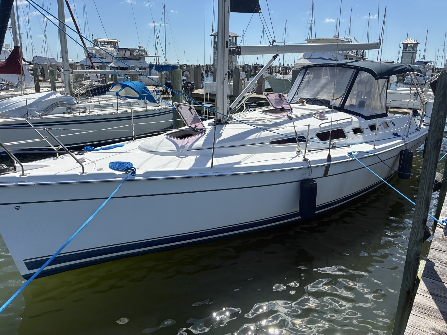 | Notable Upgrades: Electric Windlass, Recent Sails, Bimini, Dodger, Electronics, Electric Halyard Winch, Air Conditioning, Refrigeration, Freezer, In-Mast Furling, Shoal Draft, 40HP Engine Upgrade, Dinghy, Outboard, and more |