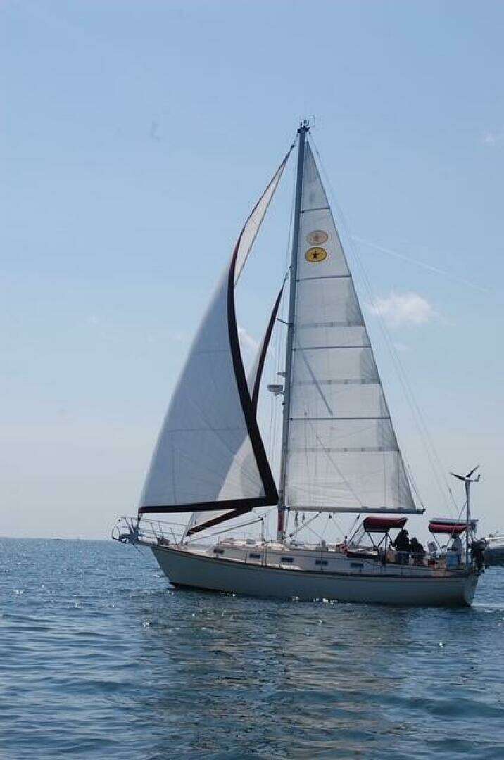 Her deck layout is designed with safety and ease of handling in mind. Wide side decks, sturdy handholds, and a secure cockpit make moving around the boat comfortable even underway. The cutter rig provides a versatile sail plan that allows the boat to be easily balanced in a variety of wind conditions.