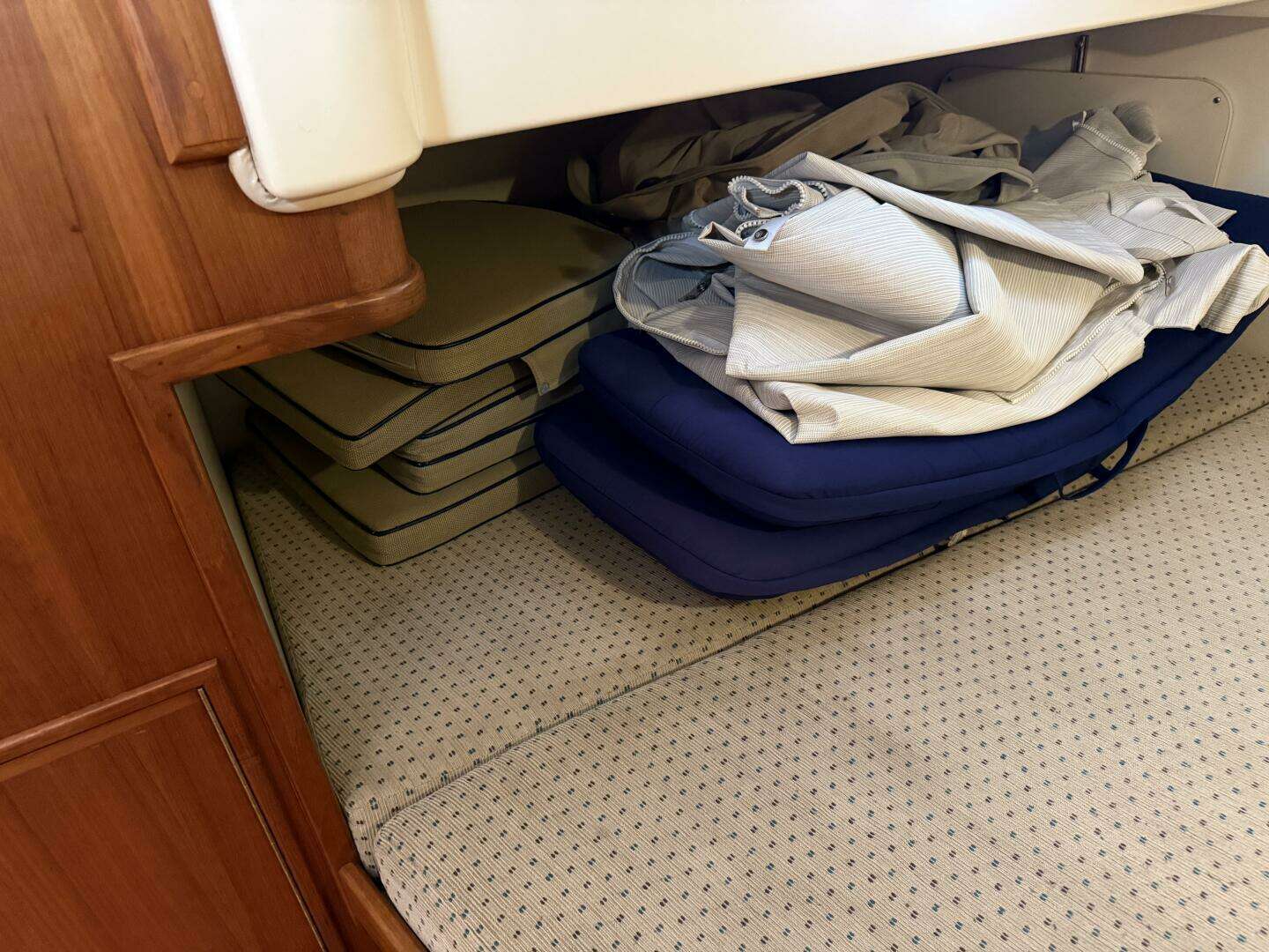 - Aft Cabin: Athwartships double berth, reading lights, three opening ports, cabin fan, drawer and cubby storage.