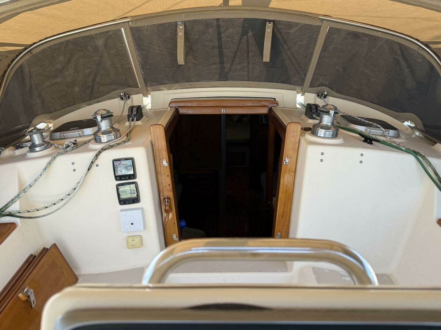 Accommodations Below decks, you'll find a thoughtfully designed layout that sleeps six comfortably. The spacious salon features a convertible dinette to starboard and settee to port, both with excellent natural lighting from hull ports and deck hatches. The forward stateroom offers a proper island berth, while the aft cabin provides privacy and its own head access. Rich teak joinery throughout creates a warm, traditional atmosphere.