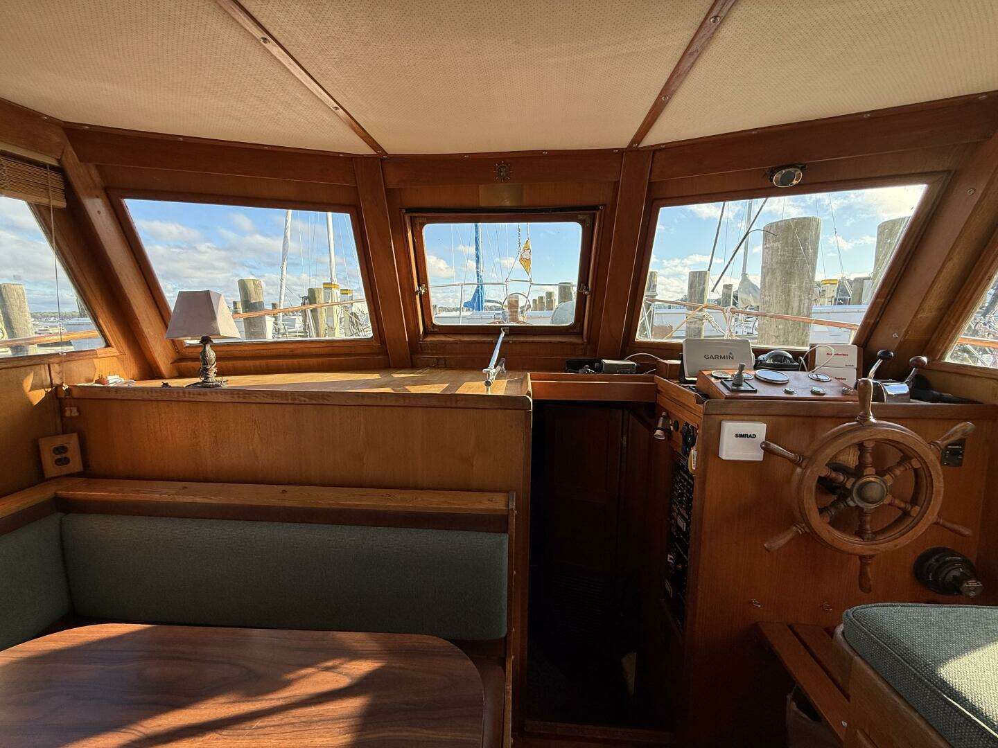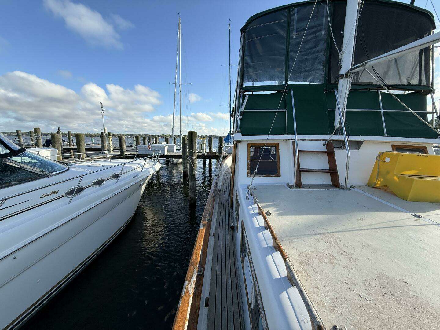 The Marine Trader 38 Double Cabin (DC) has become a timeless classic that first came to market back in 1980 and continued through 2000. The layout, ease of operation, and rich teak interior proved popular among buyers looking for longer journey/live-aboard vessels which offer plenty of comfort, space, and utility. This Marine Trader features a solid, all-fiberglass hull and a 135 hp Lehman diesel powertrain. This Marine Trader also features a bow thruster for easy docking as well as dual helms on both the fly and interior cockpit. The galley is located in the upper salon with twin deck doors on both the port and starboard sides, each providing quick access to the decks. A large stateroom with a queen bed is located aft with a full head and separate shower. A second stateroom is located forward along with the second head. The flybridge features a full enclosure and is generously sized to accommodate up to six (6-8) persons comfortably. This unique, freshwater boat just completed the Great Loop and can be taken anywhere with confidence!