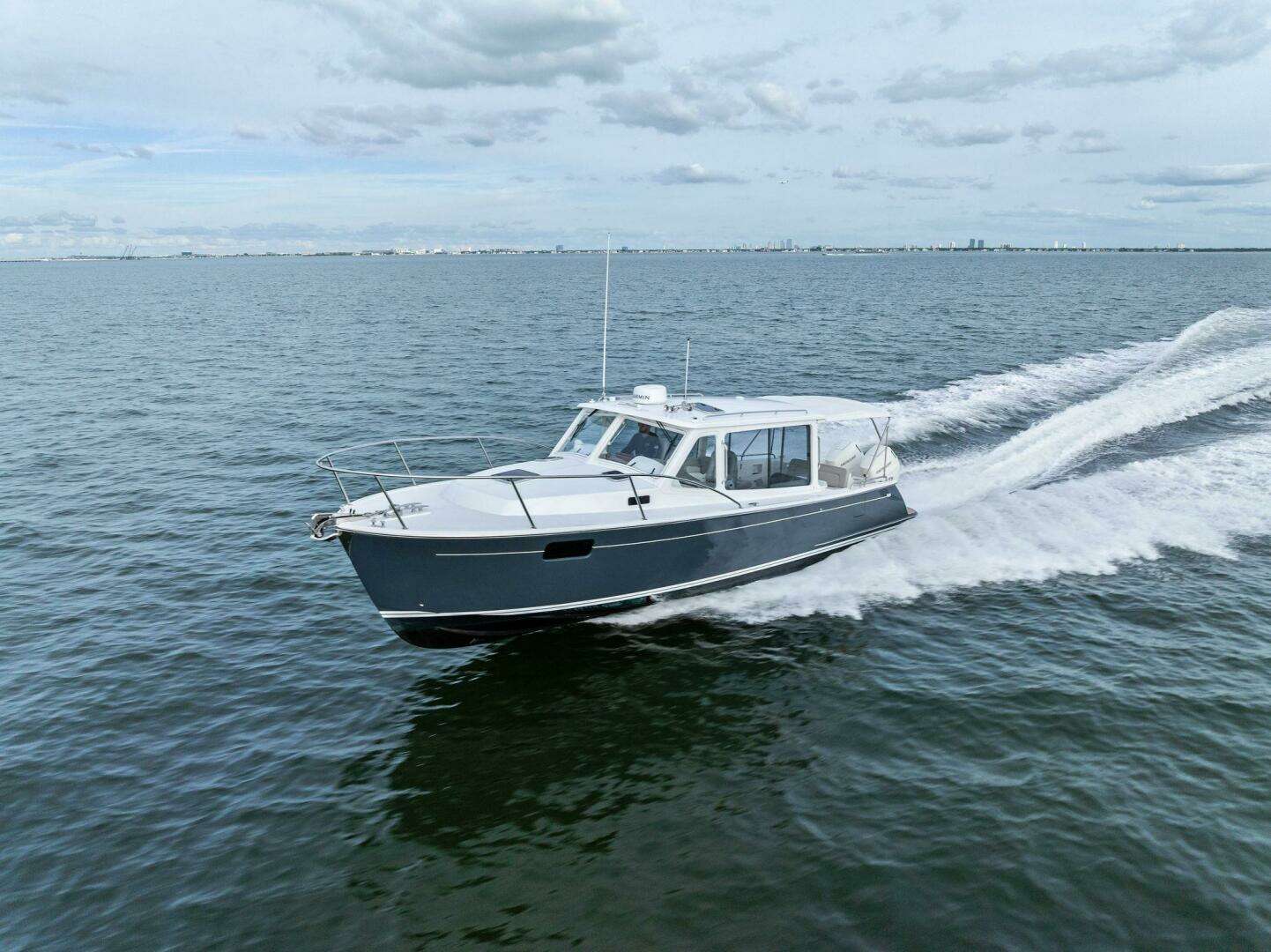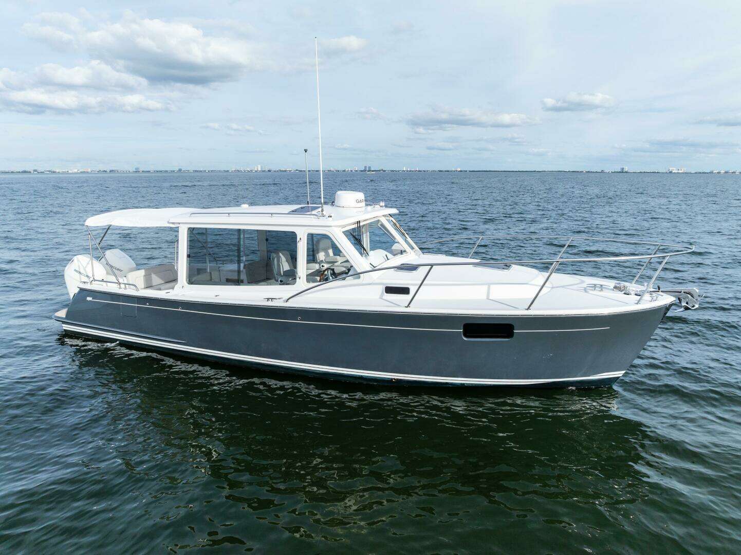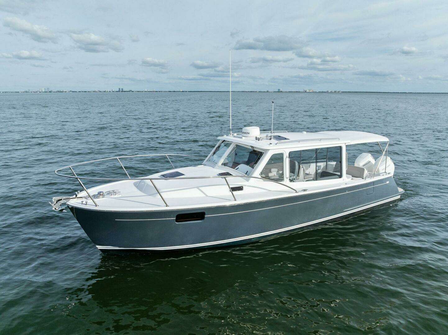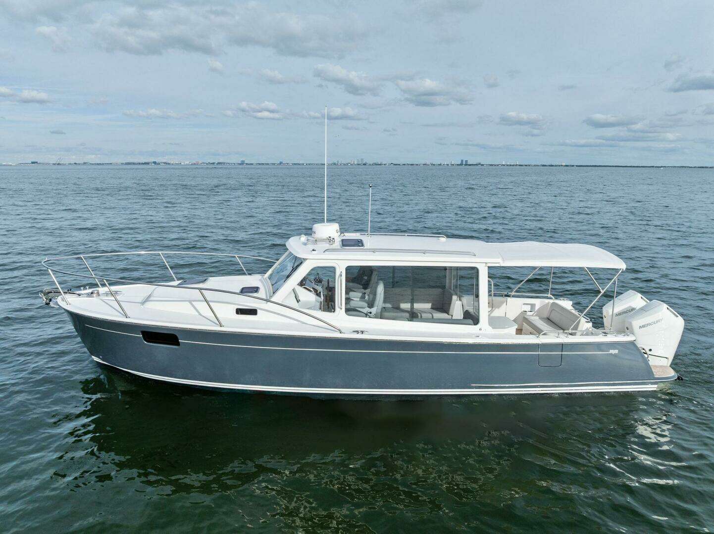 The 2025 MJM 35 delivers unmatched versatility and performance with an indoor/outdoor pilothouse, best-in-class stability, and the swift, soft ride of a Doug Zurn hull. Twin Mercury Verado outboards with joystick piloting and Skyhook provide quiet confidence, shallow-water capability, and easy ownership, while a high-tech composite build, flush deck design, full wet head with shower, and 50-mph top speed set a new standard in the 35-foot class. Ask about our factory incentives on the 2025 models to make way for our new 2026 models.