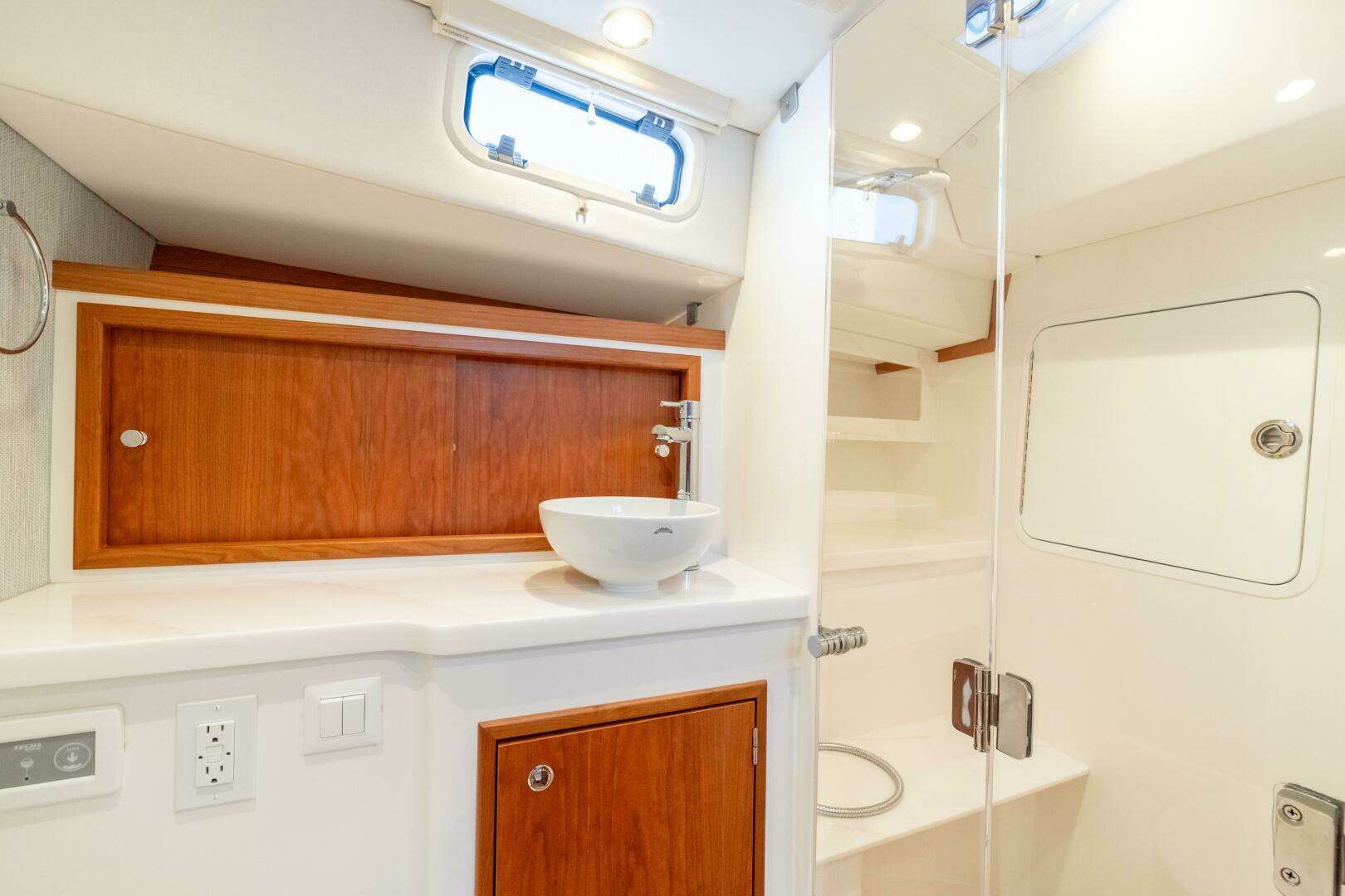 Below deck, the 38RS delivers the comforts that define a true luxury yacht: a full head with shower, ample storage, and fine details like high-gloss teak accents and satin-finished cherry shelves. Whether you’re fishing offshore, hosting at the dock, or slipping away for a day on the water, the versatile MJM 38RS stands apart as a luxury fishing boat built to perform without compromise.
