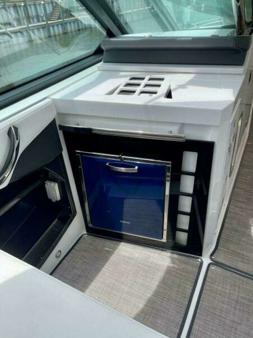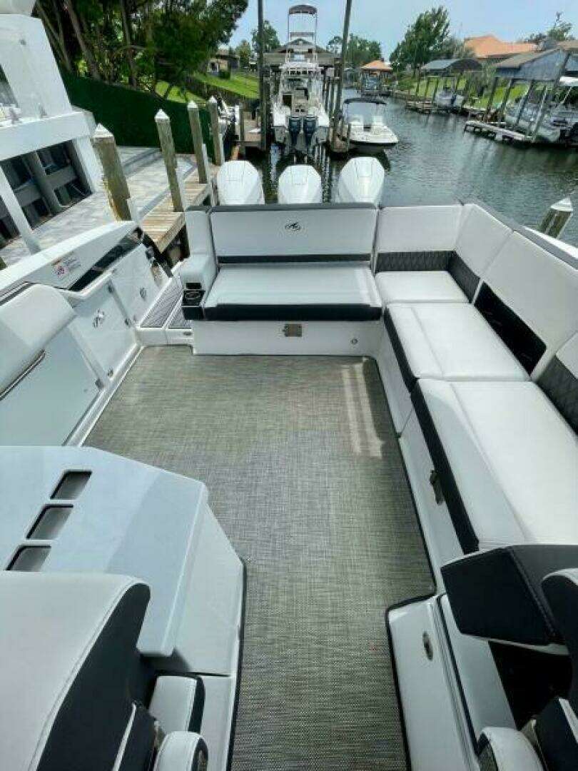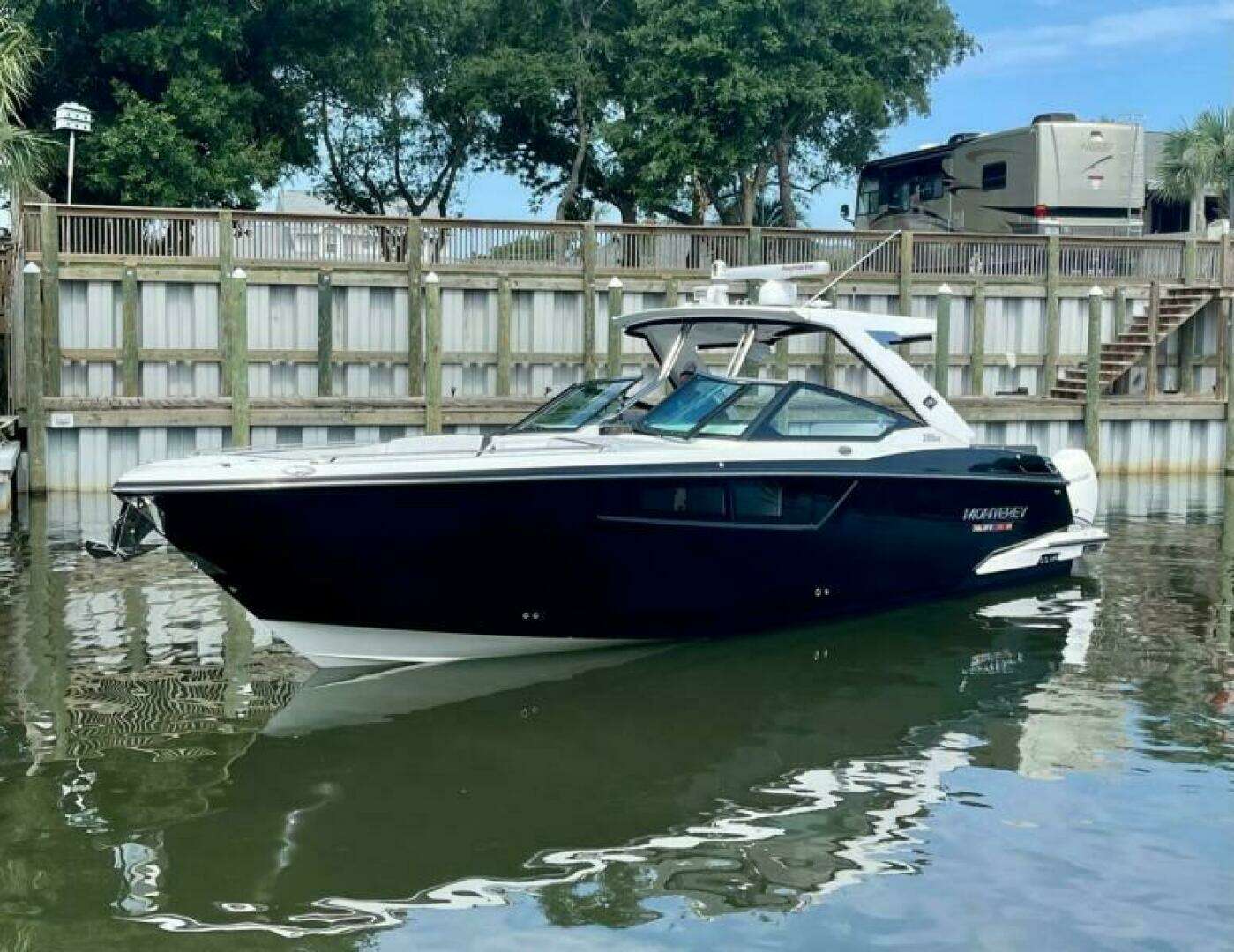 2021 Monterey 385 SE, "MIA VICTORIA", is in spectacular condition with low hours and shows like new. Designed for both day cruising and overnight trips, this yacht combines the spaciousness of a bowrider with a comfortable, well-appointed cabin.