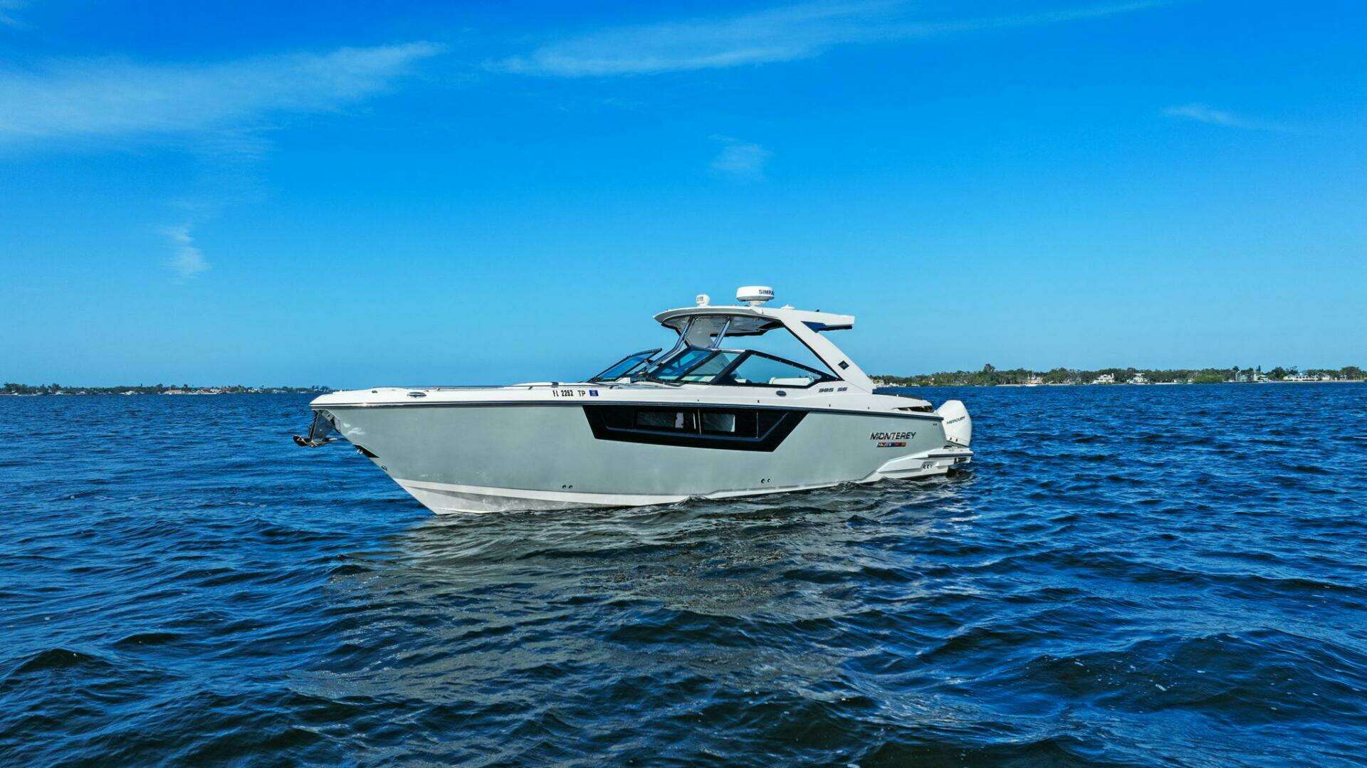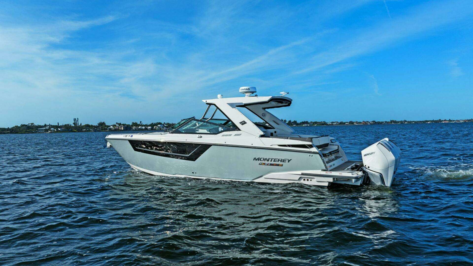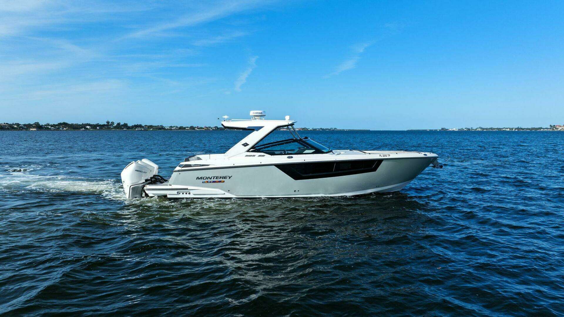 Monterey incorporates the best features for cruising the coastline with all the comforts for a day trip or overnight stay with this model. It has the size and range to make a Florida Keys excursion from Tampa Bay or a Bahamas crossing. Skyhook and Joystick control helps an owner look like a pro while waiting for bridges to open or coming into the dock with a steady breeze. The Cabin is comfortable and the Head is roomy. I was impressed with the creature comforts and performance and look forward to the final sea trial!