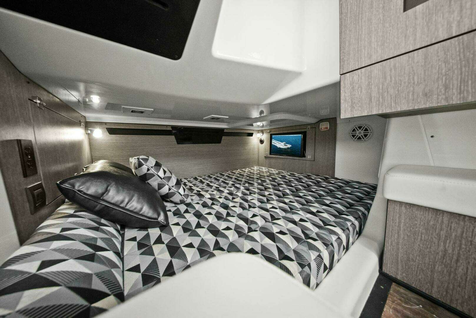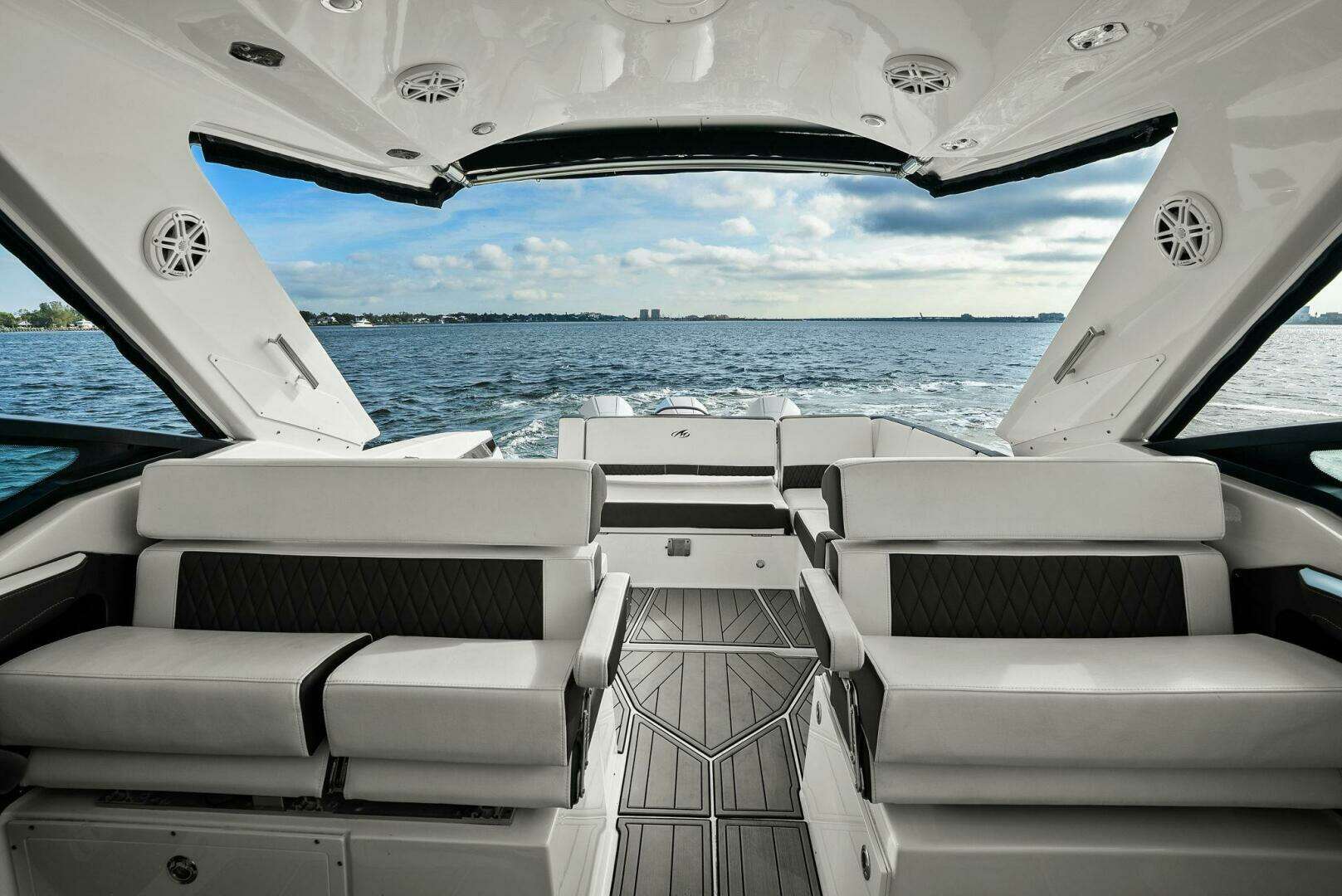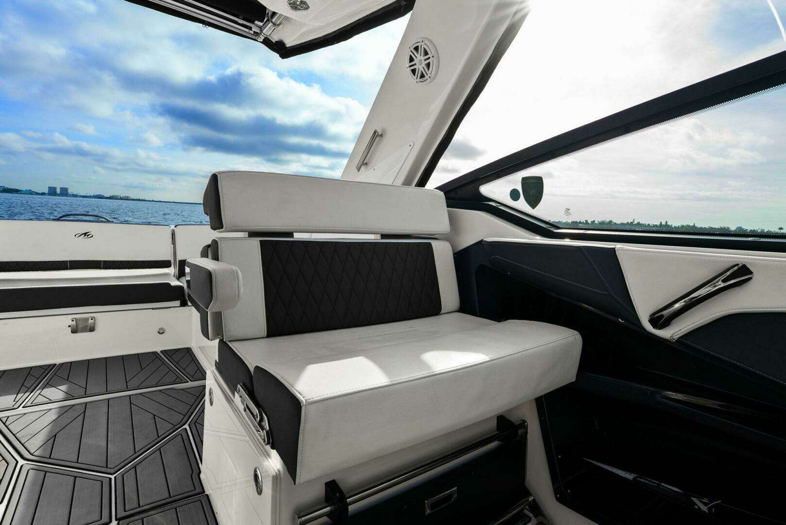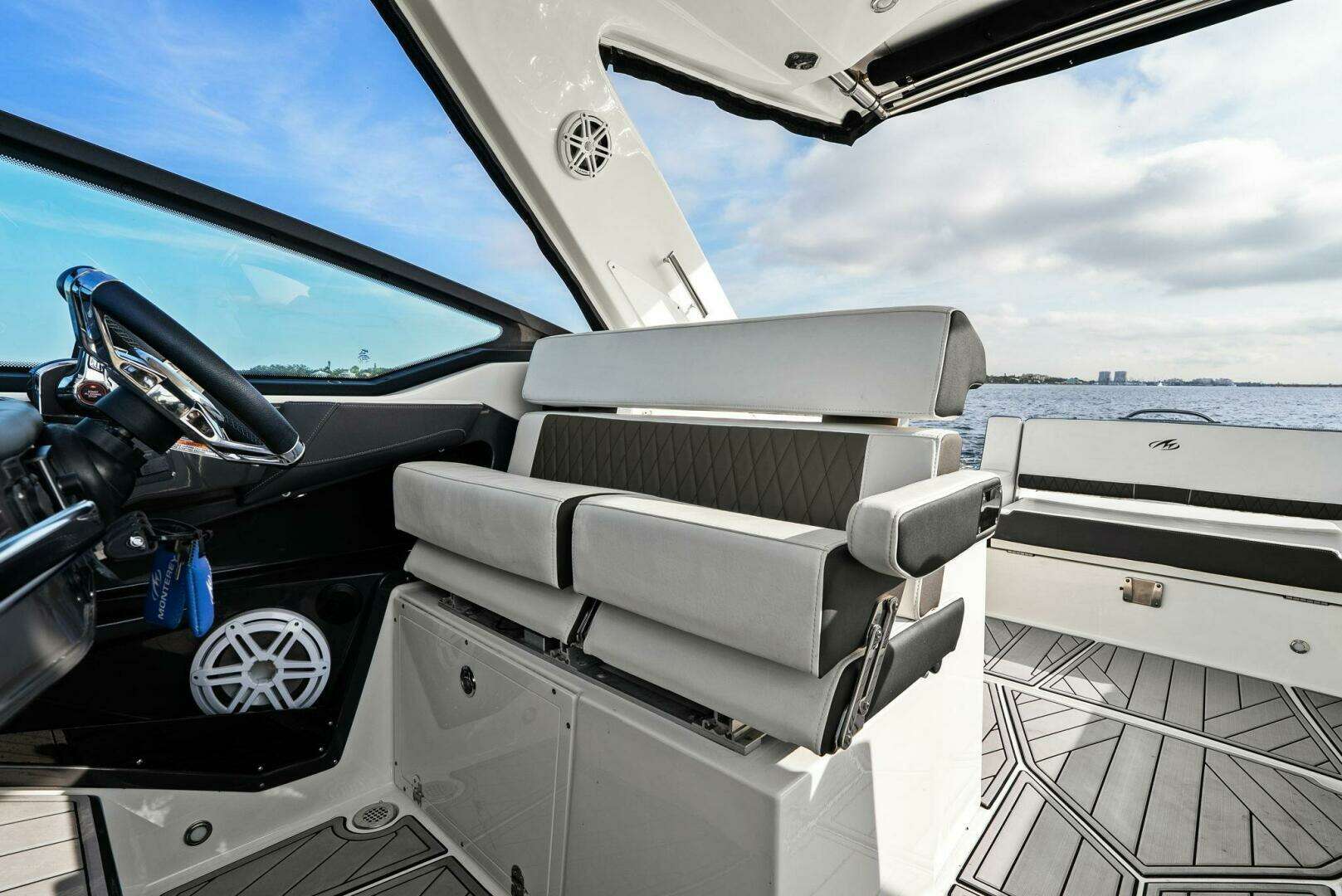 Monterey incorporates the best features for cruising the coastline with all the comforts for a day trip or overnight stay with this model. It has the size and range to make a Florida Keys excursion from Tampa Bay or a Bahamas crossing. Skyhook and Joystick control helps an owner look like a pro while waiting for bridges to open or coming into the dock with a steady breeze. The Cabin is comfortable and the Head is roomy. I was impressed with the creature comforts and performance and look forward to the final sea trial!