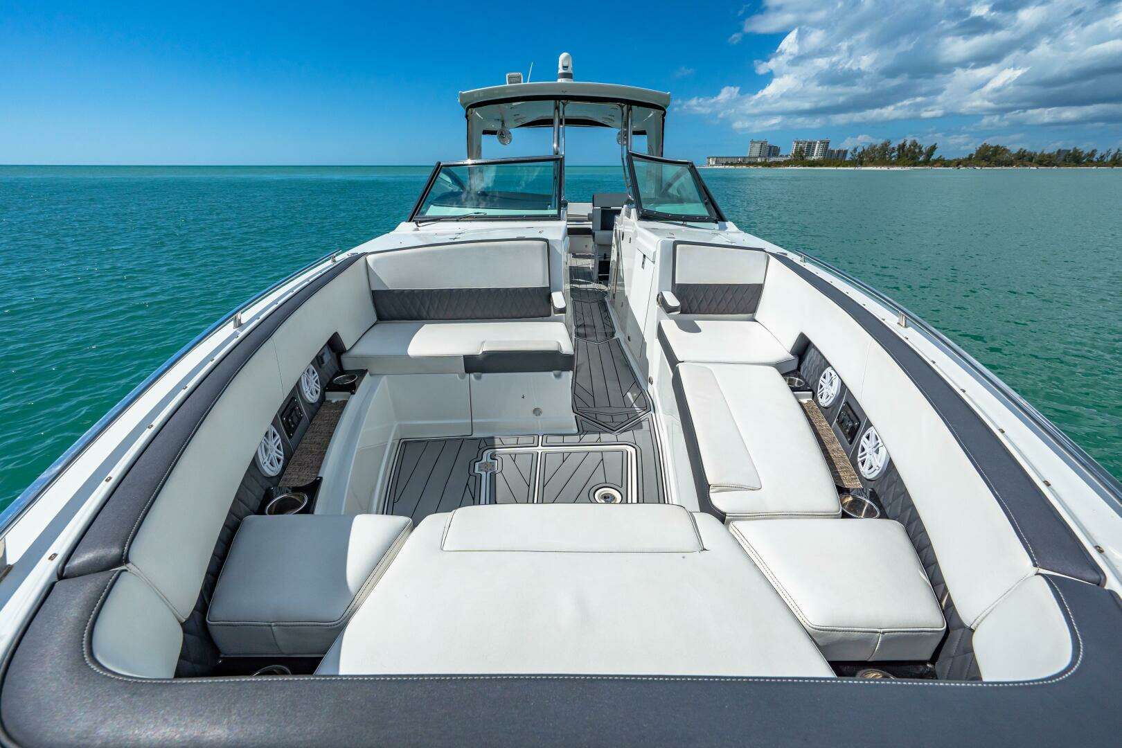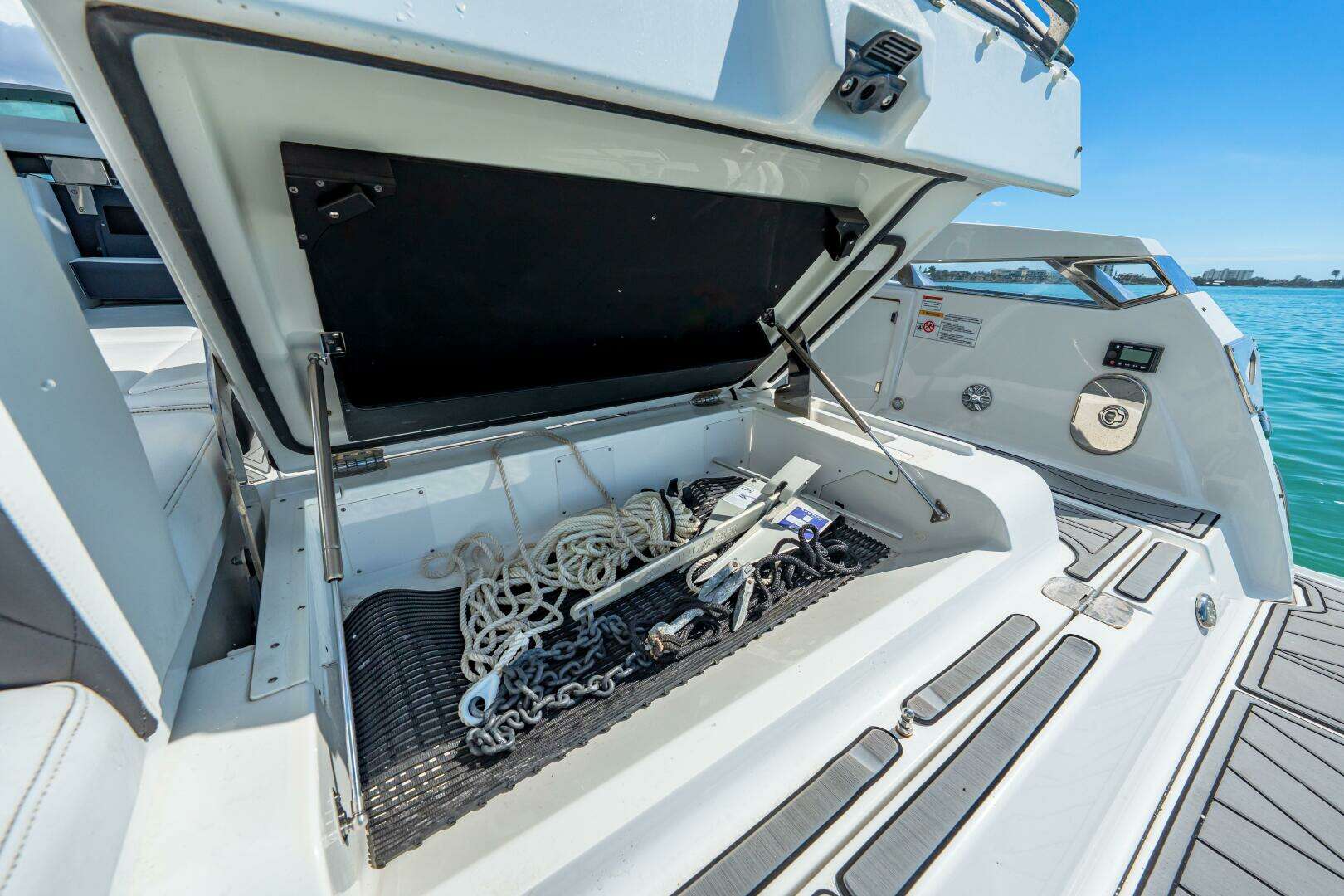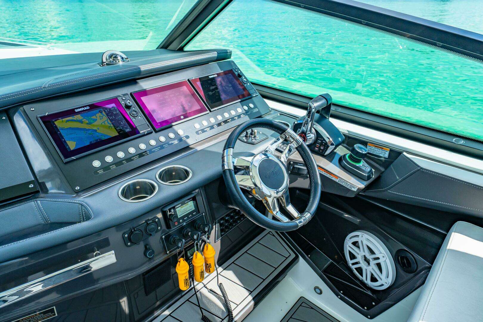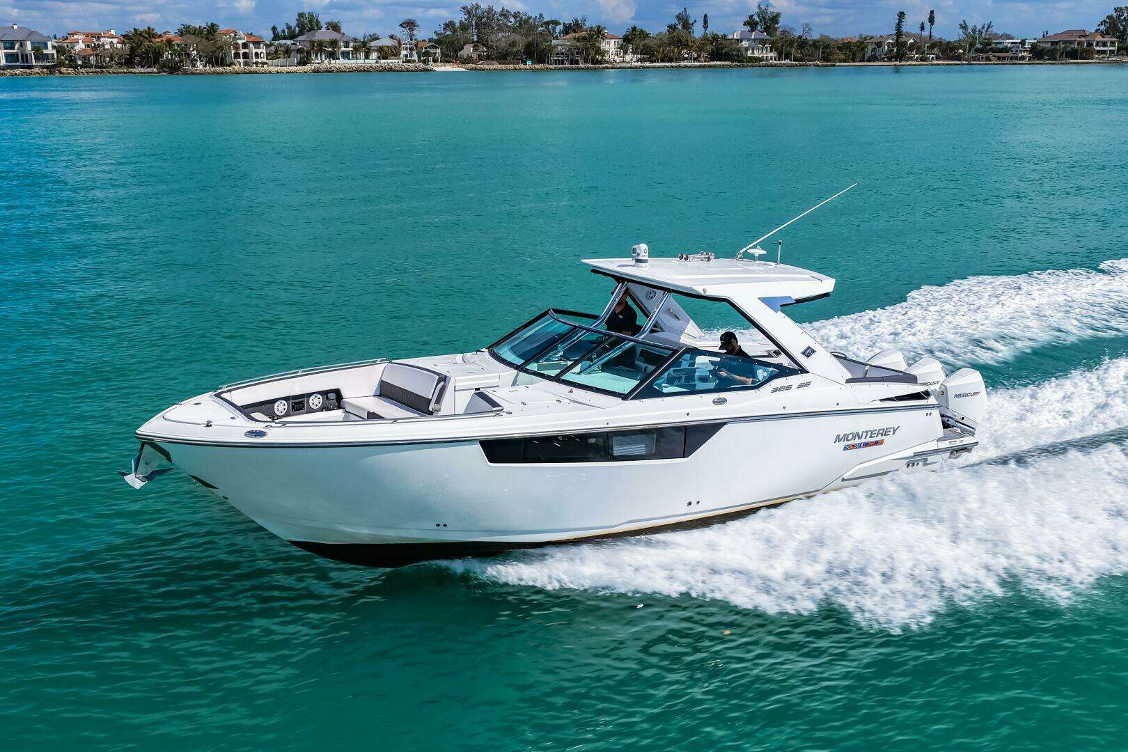 Monterey incorporates the best features for cruising the coastline with all the comforts for a day trip or overnight stay with this model. It has the size and range to make a Florida Keys excursion from Tampa Bay or a Bahamas crossing. Skyhook and Joystick control helps an owner look like a pro while waiting for bridges to open or coming into the dock with a steady breeze. The Cabin is comfortable and the Head is roomy. I was impressed with the creature comforts and performance and look forward to the final sea trial!