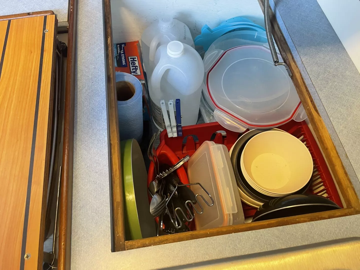- Water: 55 gallons under stb settee & 40 gallons under v berth