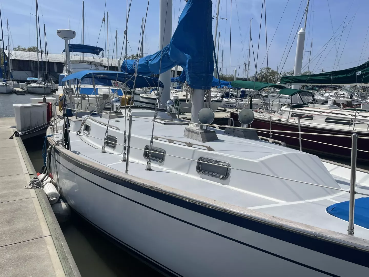 For those readers who have been around as long as I have, your first vision at the mention of Morgan 38 is likely the classically styled, late ’60s, Charley Morgan-designed sloops and yawls that were Morgan’s follow-up the successful Morgan 34. For more recent devotees, Morgan 38 brings to mind a more contemporary series of 38 footers introduced by Morgan Yachts in 1977. In 1993 still another Morgan 38 was introduced. All models are commonly referred to as Morgan 38’s but that’s where the commonality ends. Only about 80 of the early Morgan-designed 38s were built, while nearly 500 of the 1977 Ted Brewer-designed series were built. The 93 model was a rather bulbous center cockpit model that has nothing in common with other models except its name. Space is limited and there are generally many more of the Brewer-designed models on the market, I am going to concentrate my look this month on this series. Very few models of boats have been built for protracted periods without some changes to their form or layout and the Morgan 38 is no exception. Introduced in 1977 as the Morgan 382, minor rig changes resulted in a model name change to Morgan 383 in 1980. In 1983 there were several more changes and again the model name changed to the Morgan 384. Although Morgan Yacht was purchased by Catalina in 1985, the Morgan 384 continued in production until 1986