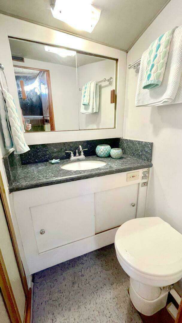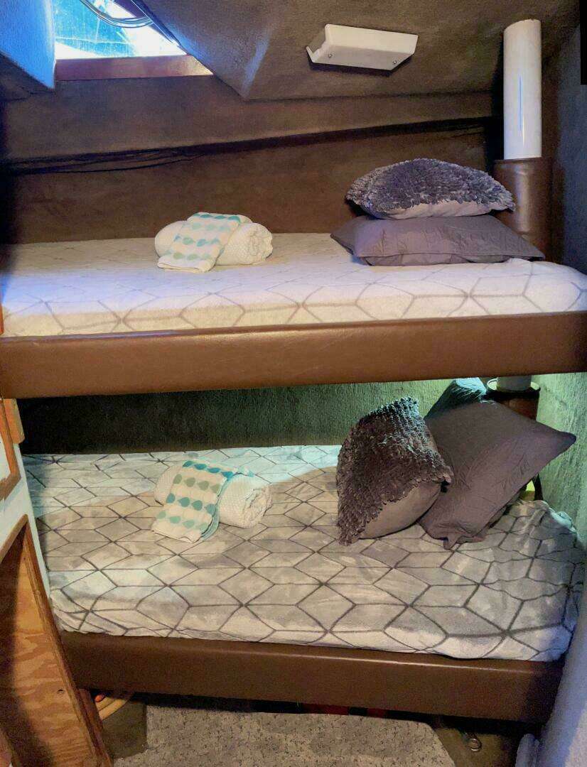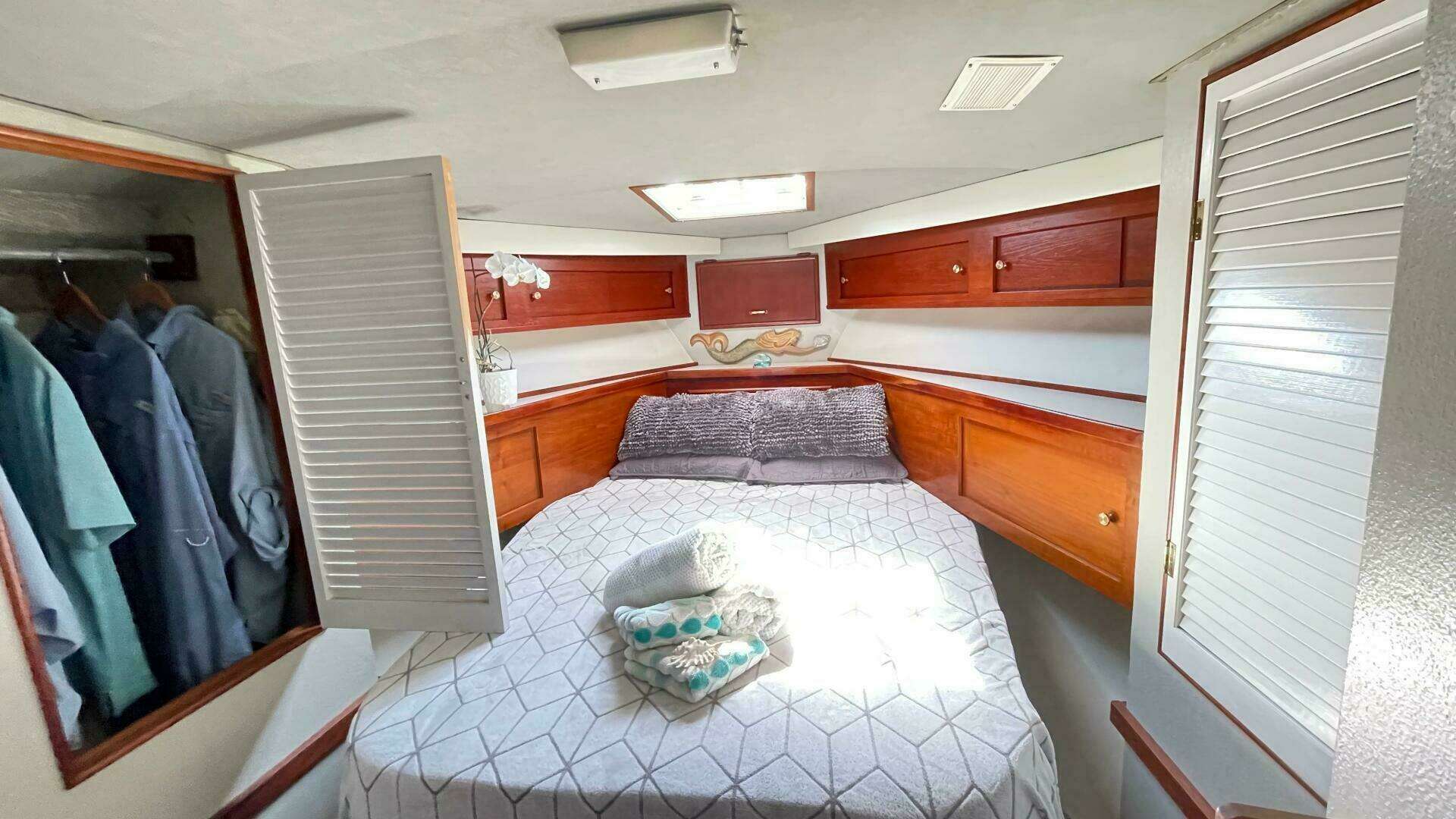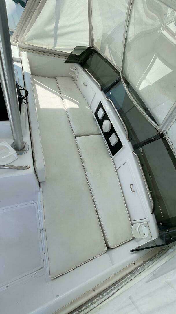 - Forward Fly Bridge bench seating can be converted into additional sleeping berth.