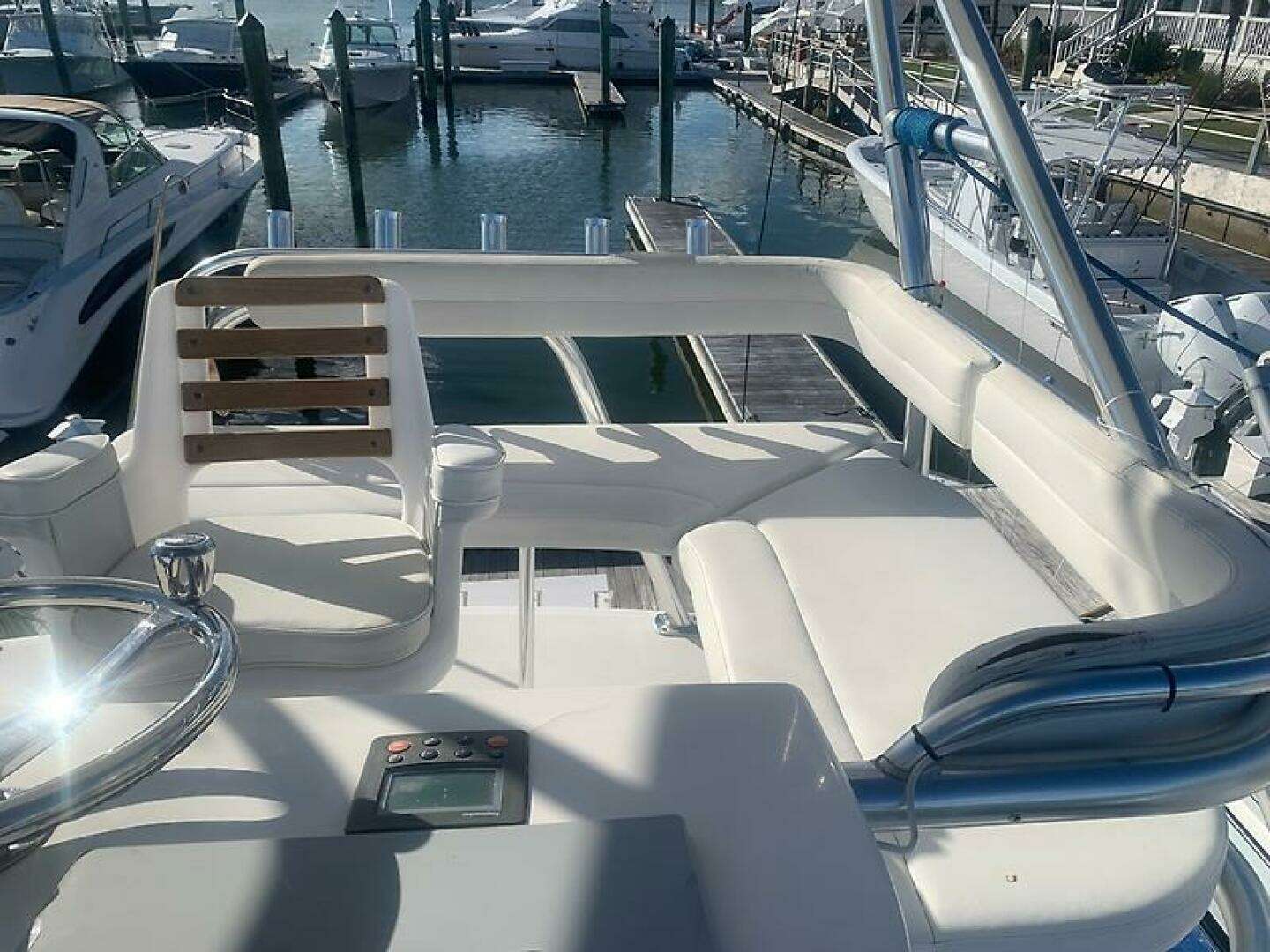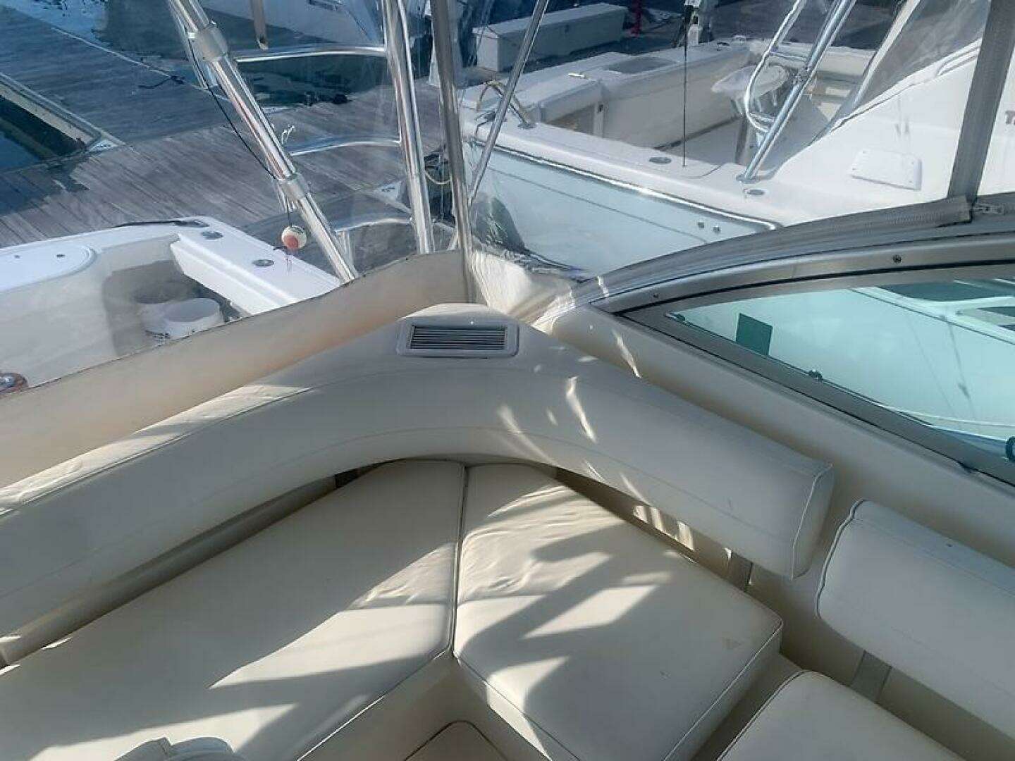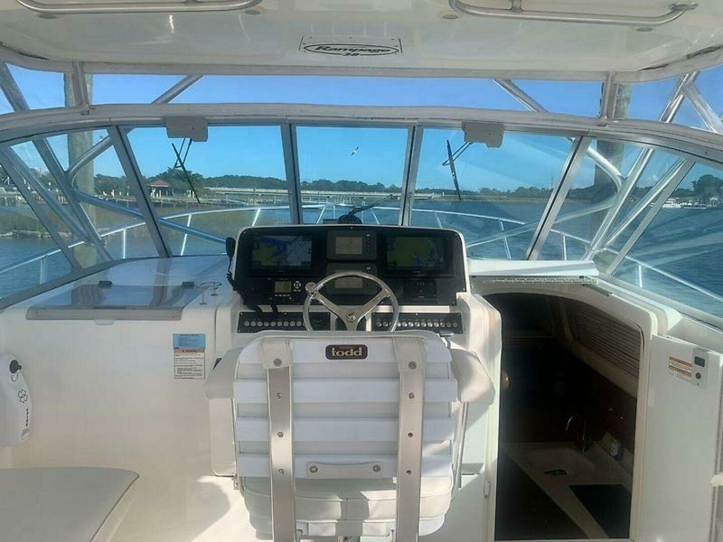2006 38 Rampage Express powered by twin C9 Caterpillar Diesel Engines. She has a cruise speed of 25 knots and can reach top speed of 30 knots. Stepping aboard you will see she is a large 38' vessel and offers not only a great platform for your offshore enthusiast, with a well-appointed helm deck and very nice accommodations below. The helm deck offers reverse cycle Heating and Air Conditioning as well as a full Garmin Electronics Package and a large port side L-Shape bench seat. Below deck you will find a full galley to starboard, a large U-Shaped dinette to port which can be used as additional berthing, marine head to port just forward of the dinette as well as a large V-Berth forward. Looking for a clean well maintained express? Give me a call to set up a time to come see this 38.