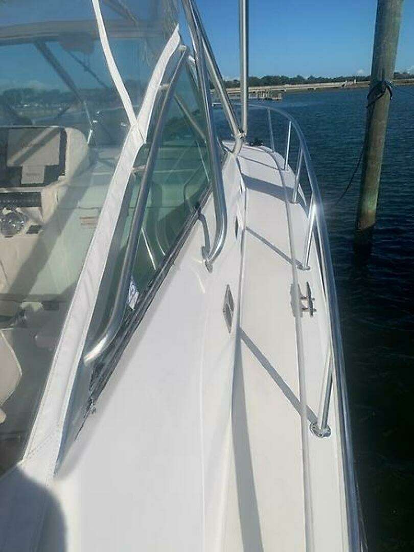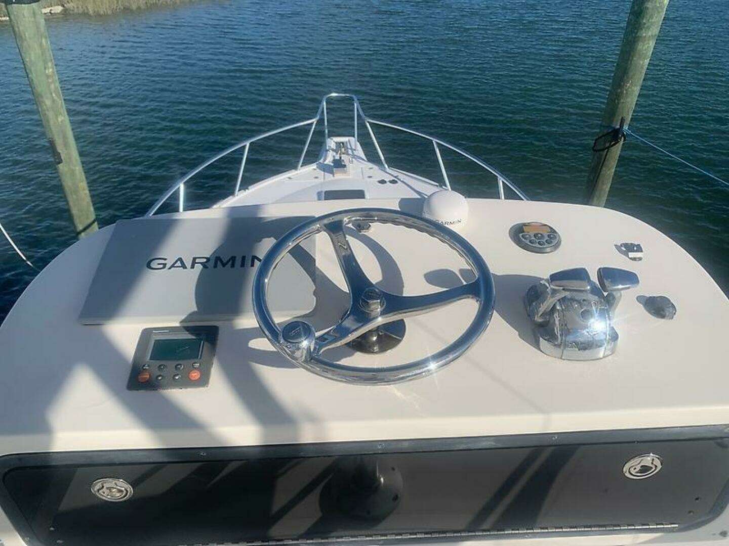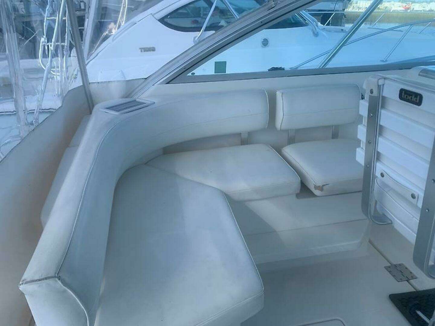 2006 38 Rampage Express powered by twin C9 Caterpillar Diesel Engines. She has a cruise speed of 25 knots and can reach top speed of 30 knots. Stepping aboard you will see she is a large 38' vessel and offers not only a great platform for your offshore enthusiast, with a well-appointed helm deck and very nice accommodations below. The helm deck offers reverse cycle Heating and Air Conditioning as well as a full Garmin Electronics Package and a large port side L-Shape bench seat. Below deck you will find a full galley to starboard, a large U-Shaped dinette to port which can be used as additional berthing, marine head to port just forward of the dinette as well as a large V-Berth forward. Looking for a clean well maintained express? Give me a call to set up a time to come see this 38.
