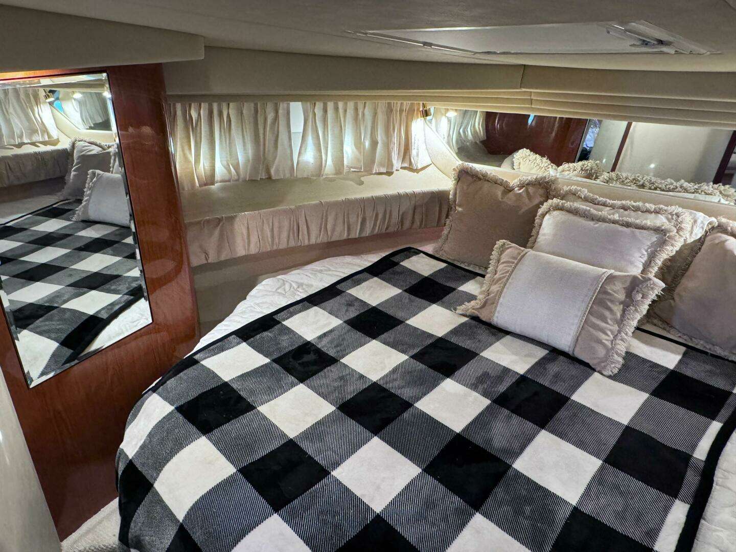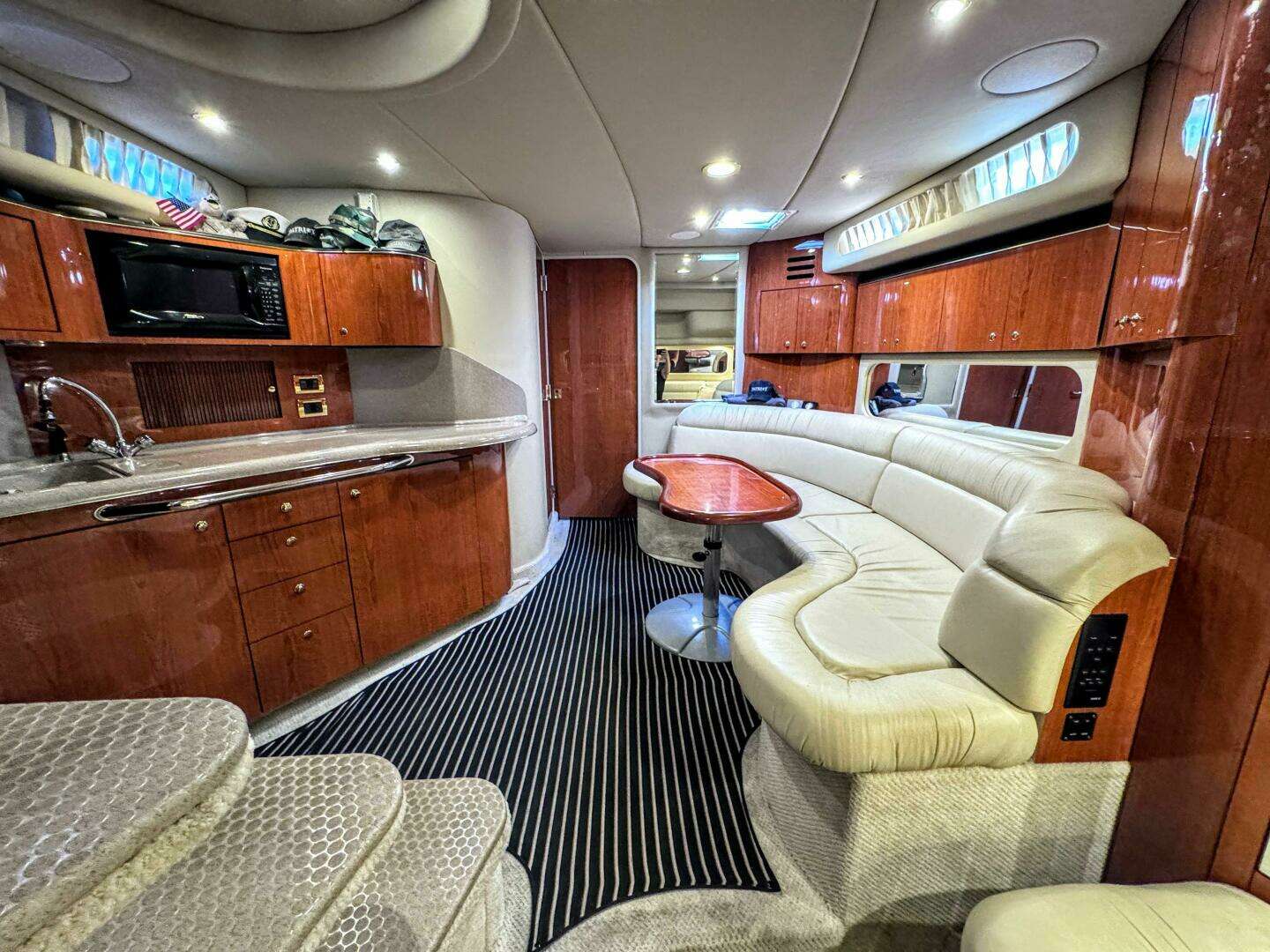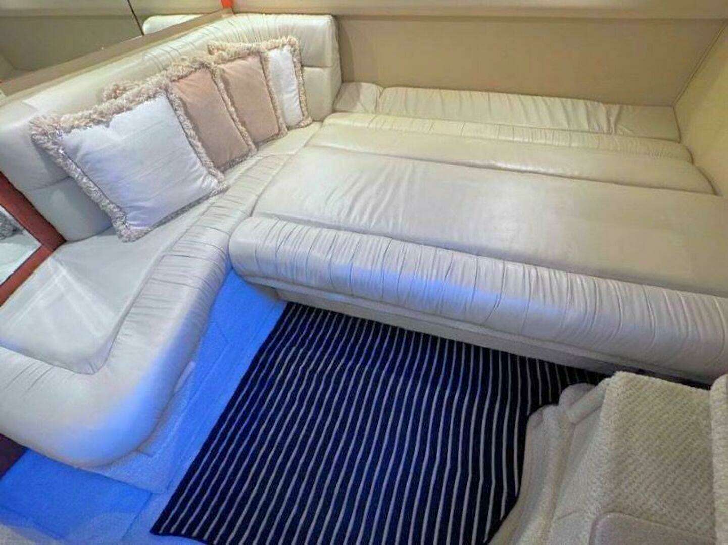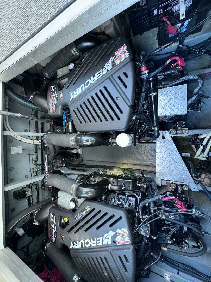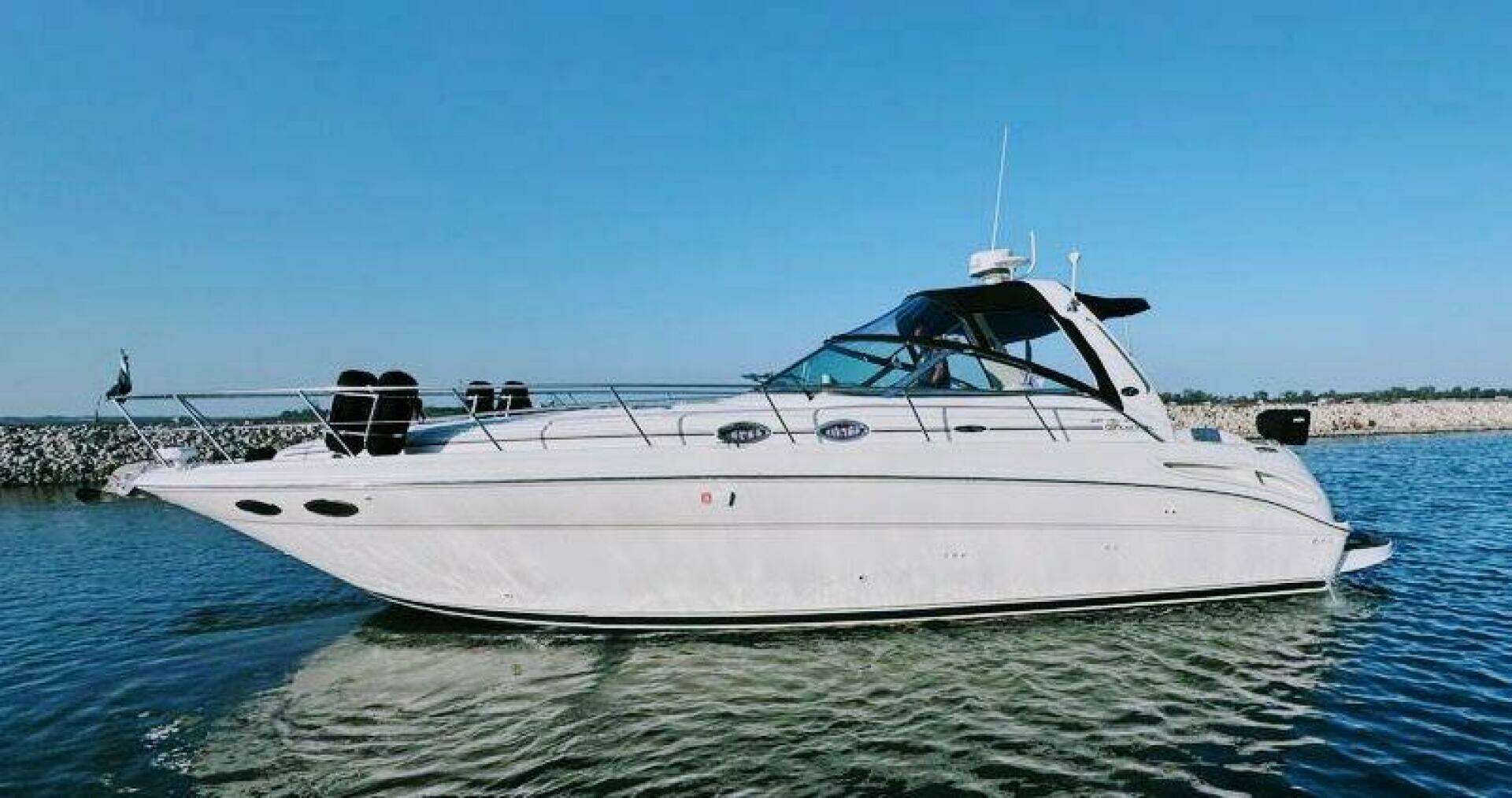 Fresh water only with Mercruiser 8.1L Horizon 420 HP V-Drives Extensive service history since she was put into service and plenty of notable upgrades and features to be considered. See equipement list as well as improvements to the most popular boat Sea Ray ever built in this size range. See below for bullet point list: 8.1L Mercruiser 420 HP Inboards with 894 hrs 7KW Westerbeke genset with 356 hours New GARMIN Radar and GPS Plotter New RAYMARINE VHF radio RAYMARINE ST7000 Autopilot 2024 Two brand new AC Units in salon NORCOLD fridge and freezer in salon NORCOLD fridge in cockpit Fusion Bluetooth system with Clarion speakers NEW LED Tri-color cockpit lighting in Red/White/blue option New smart TV in FWD stateroom Kenyon flush mount ceramic stove in galley Newer cockpit carpets Newer salon carpet covers Survey done in July 2023 and all recommendations complete.