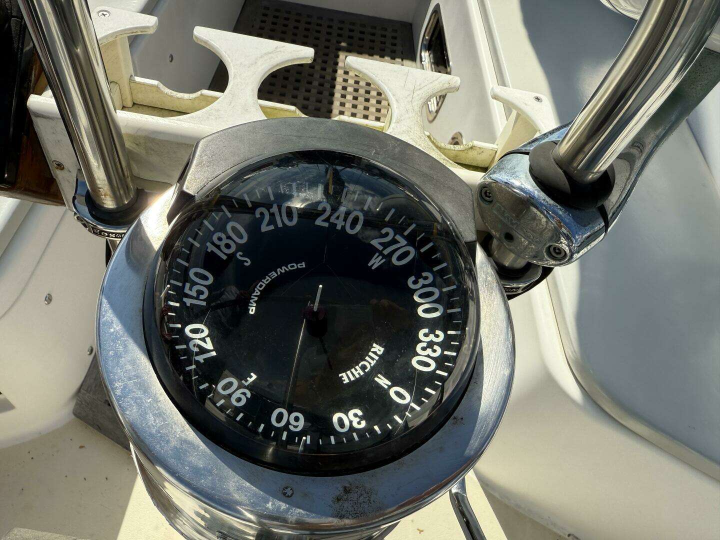 - Drink holders mounted on front of binnacle