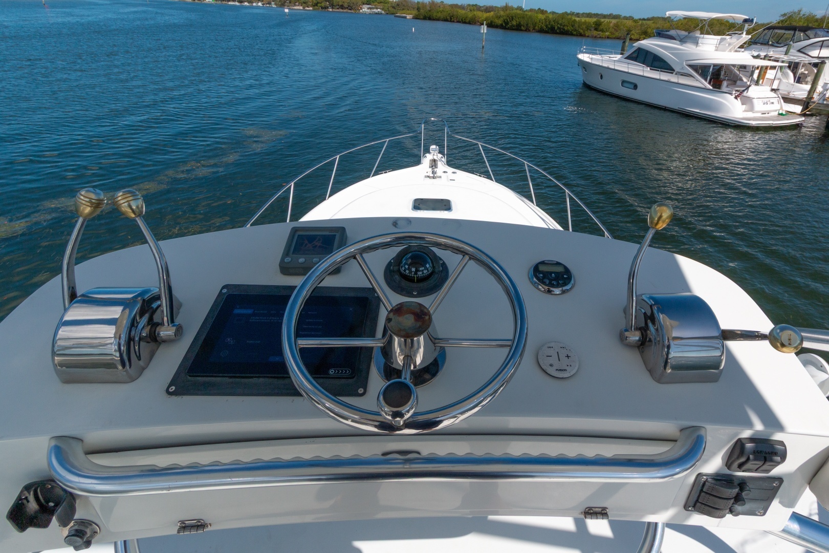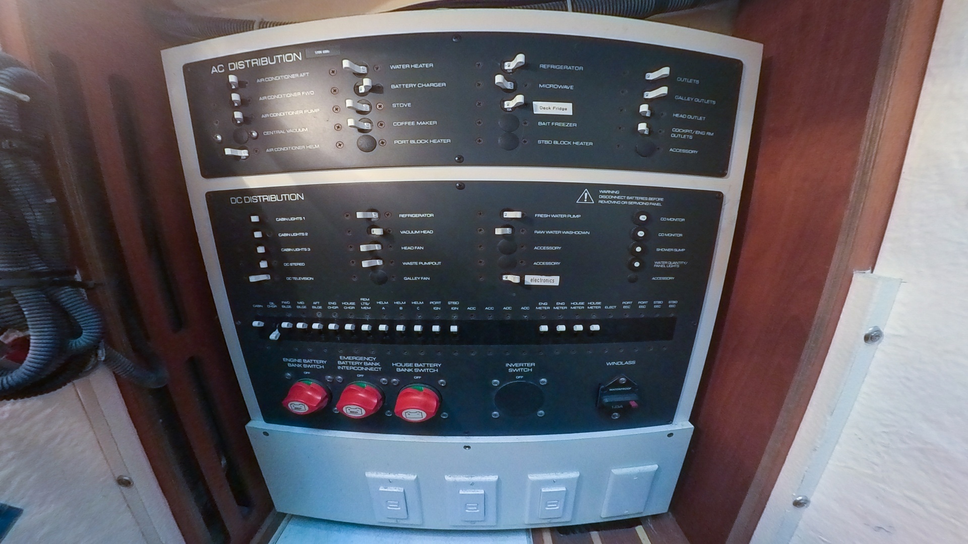 HELM ELECTRONICS INCLUDE: HELM AIR CONDITIONER, COCKPIT REFRIDGERATOR CONVENIENTLY LOCATED BEHIND THE CAPTIAN'S SEAT.