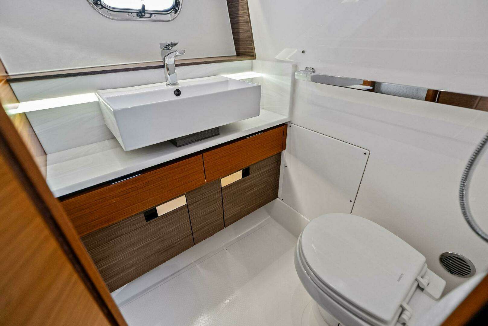 - Full Fiberglass Private Head Compartment with Non-Skid Floor
