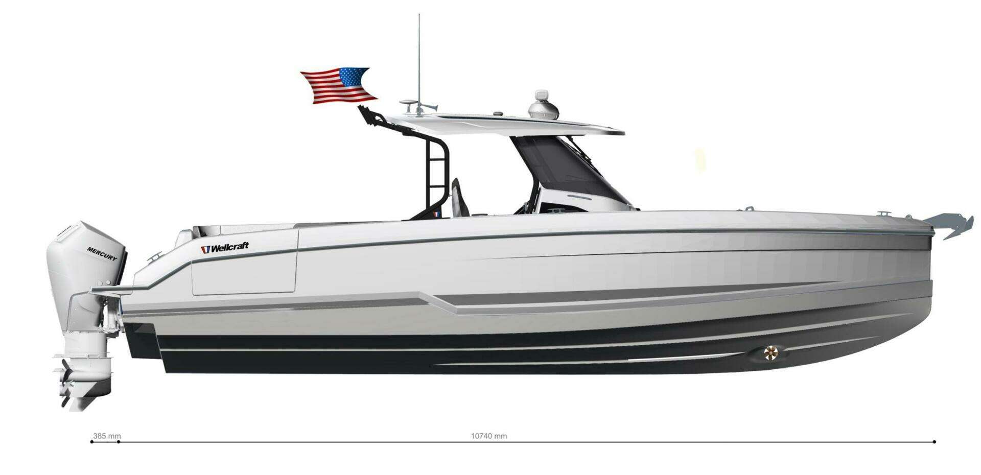 Combining spacious social areas, unrivalled performance, this boat is also packed with entertainment features for thrill-seekers. At 38’ 4” (11,69m), the Wellcraft 38 T-Top combines unrivalled performance, dynamic driving pleasure and spacious social areas. Packed with superior entertaining features, unparalleled seating capacity and an innovative swim platform, it is the ultimate center console for watersport enthusiasts. This offshore performer also combines exceptional power with optimized weight, delivering unrivalled speed and agility.