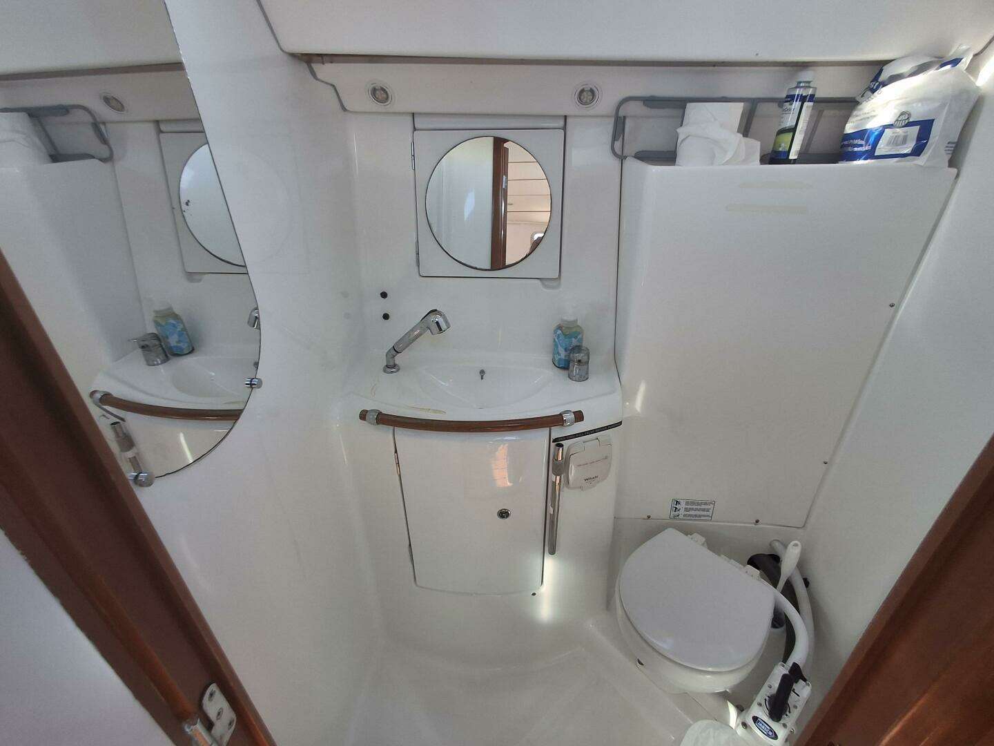 - Forward is the owenrs cabin with pulman double berth to port and vanity to starboard