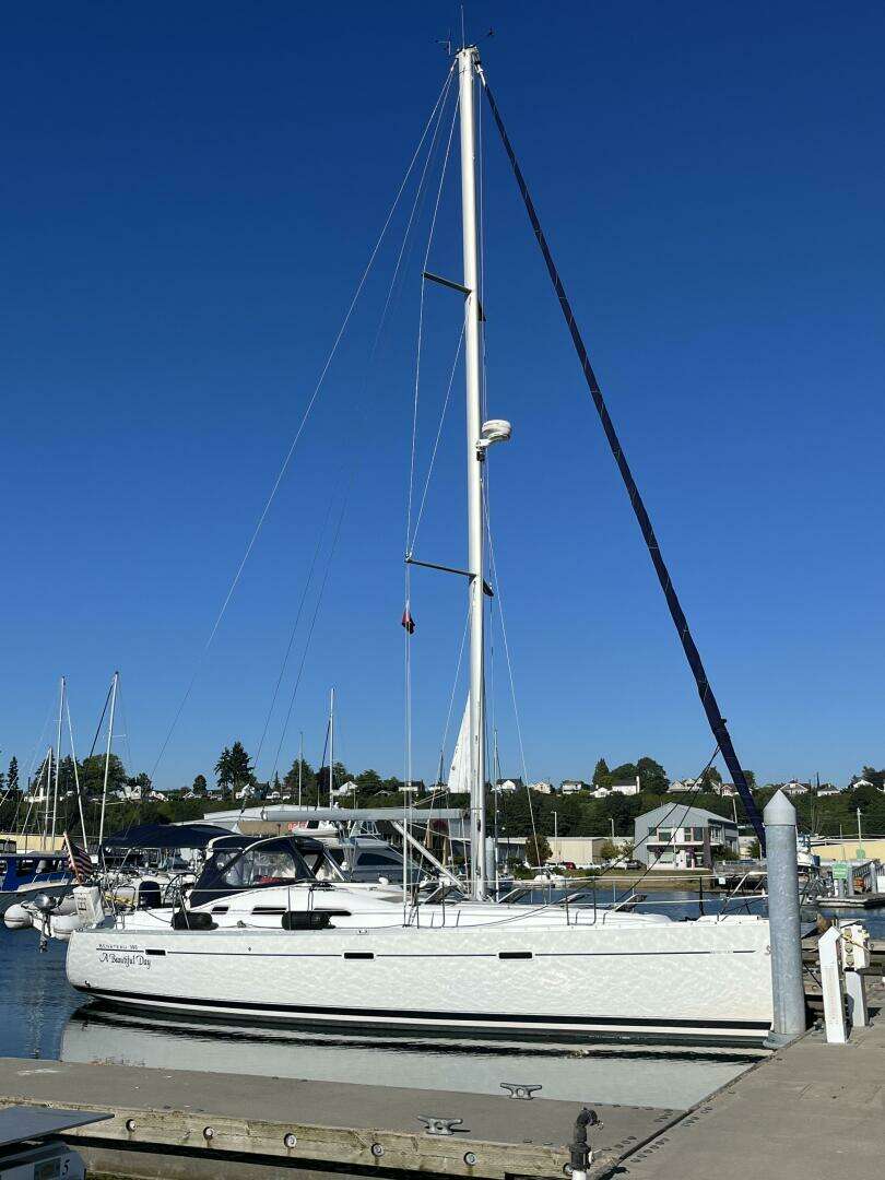 “A Beautiful Day” is a very well-kept 2006 Beneteau 393 featuring the 2-cabin, 2-head layout and a strong list of recent upgrades, including new B&G electronics installed by Pacific Marine Yachting Systems, a brand new mainsail, a Webasto diesel heater, updated interior upholstery, and a full cockpi