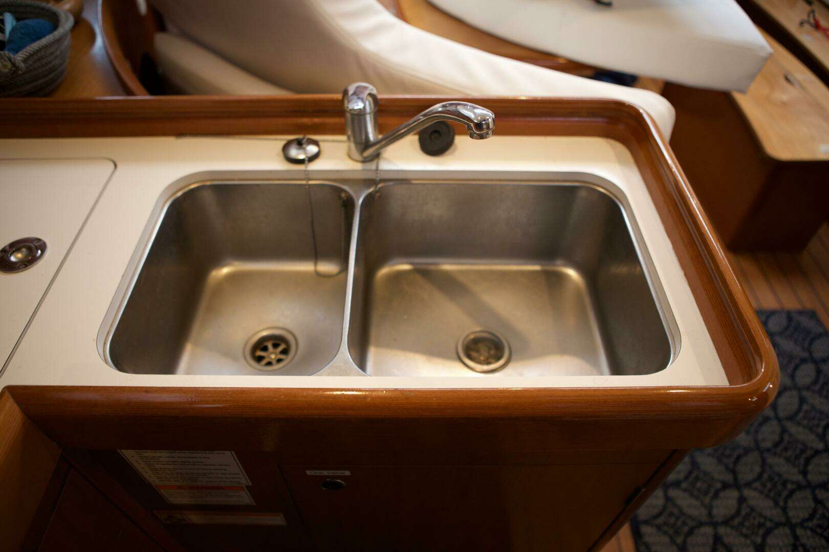 Stepping aboard "A Beautiful Day", the interior immediately shows careful ownership with clean, dry spaces throughout. The cockpit is set up for easy handling with all lines led aft, self-tailing winches, and updated B&G electronics mounted at the helm under a full enclosure.