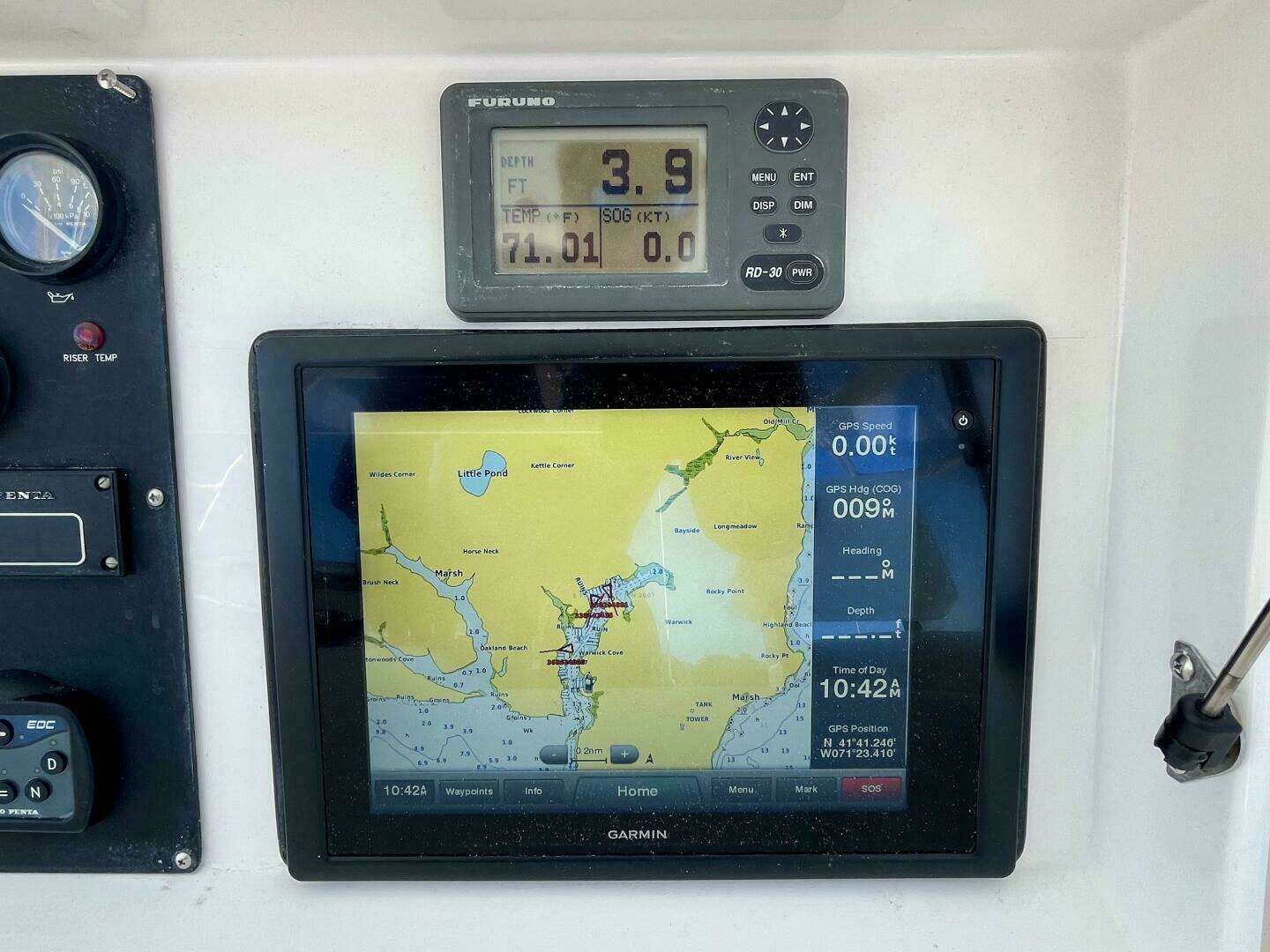 The comfortable flybridge provides excellent sight lines as well as a enjoyable entertaining space or respite "upstairs" and away from a crowd.