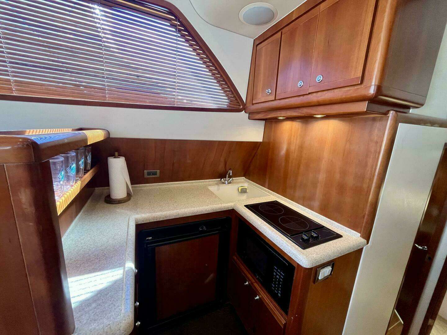The cockpit has the classic functionality of a sportfishing boat and the generous outdoor seating / entertaining space of "the back deck" at home. The tuna door allows easy access to the swim platform for water sports, dinghy access or boarding from a dock.