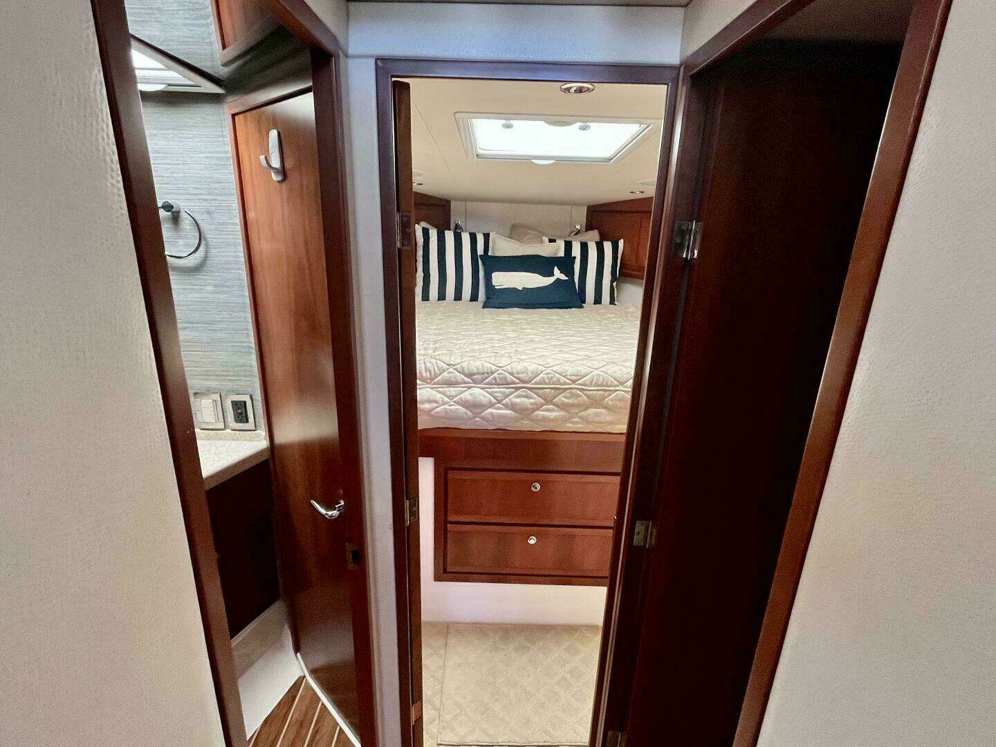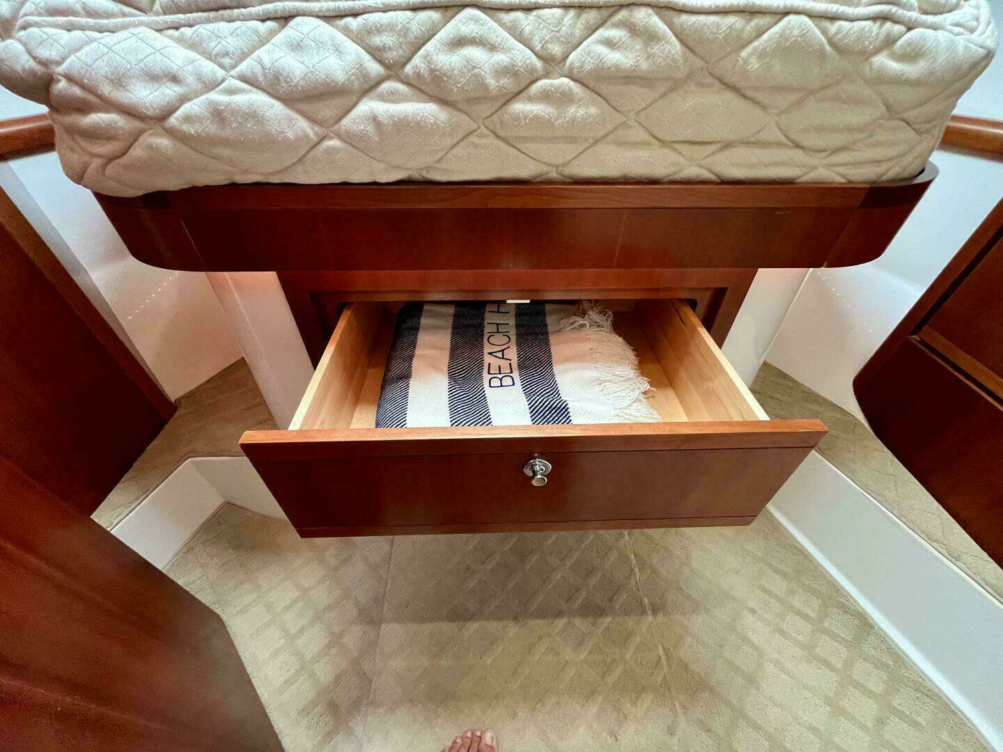 - Owners' stateroom forward with island berthDrawers, lockers, hanging lockers