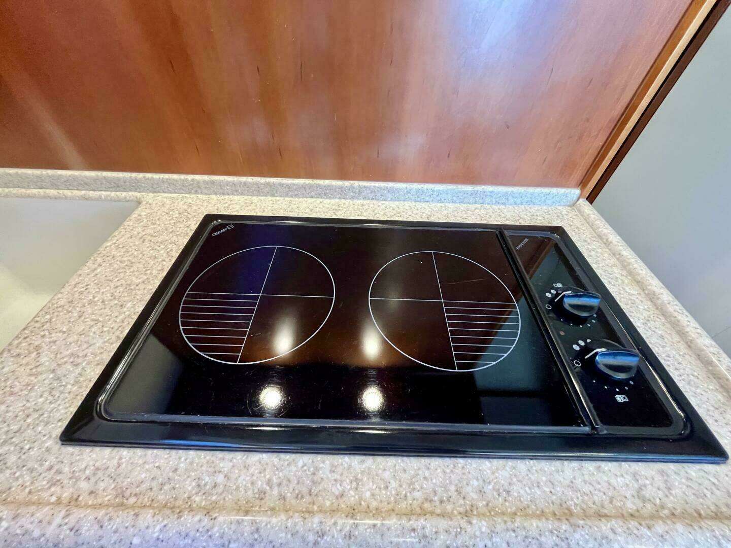 - Down one step to the mid-galleyVinyl teak and holly sole