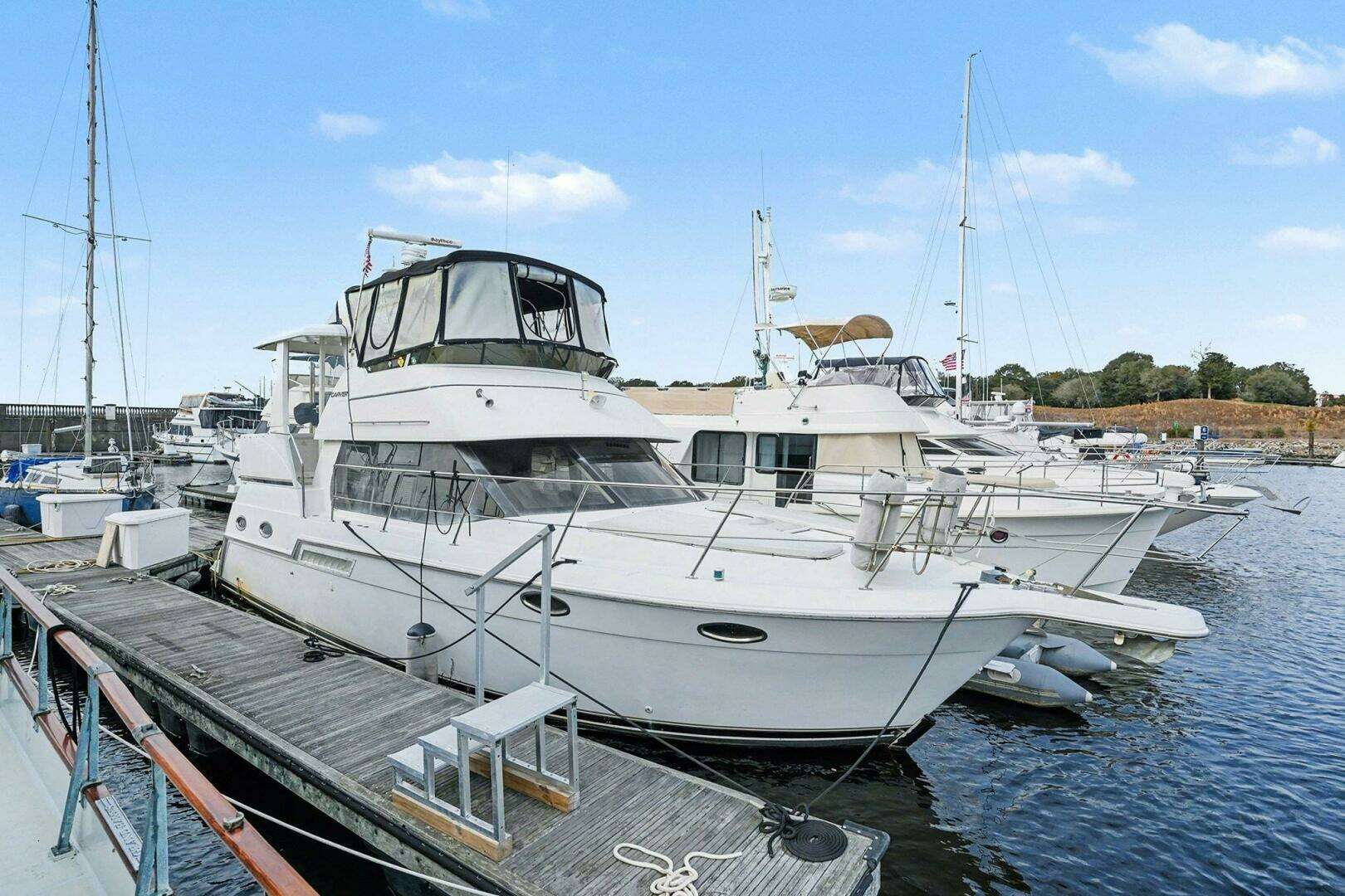 Step aboard this 2001 Carver 356 Motor Yacht and enjoy a cruising lifestyle designed around space, comfort, and easy days on the water. Known for its wide beam and thoughtful aft-cabin layout, the 356 offers the kind of interior volume and livability that makes weekends turn into long stays-and long stays feel effortless.