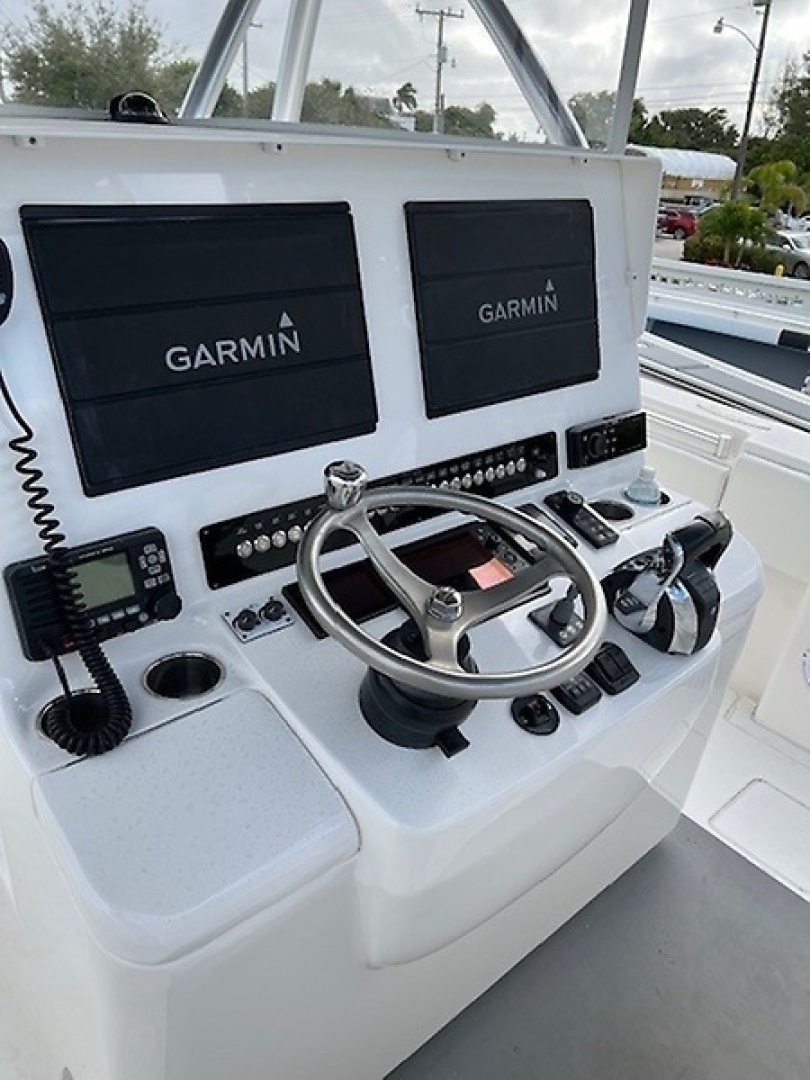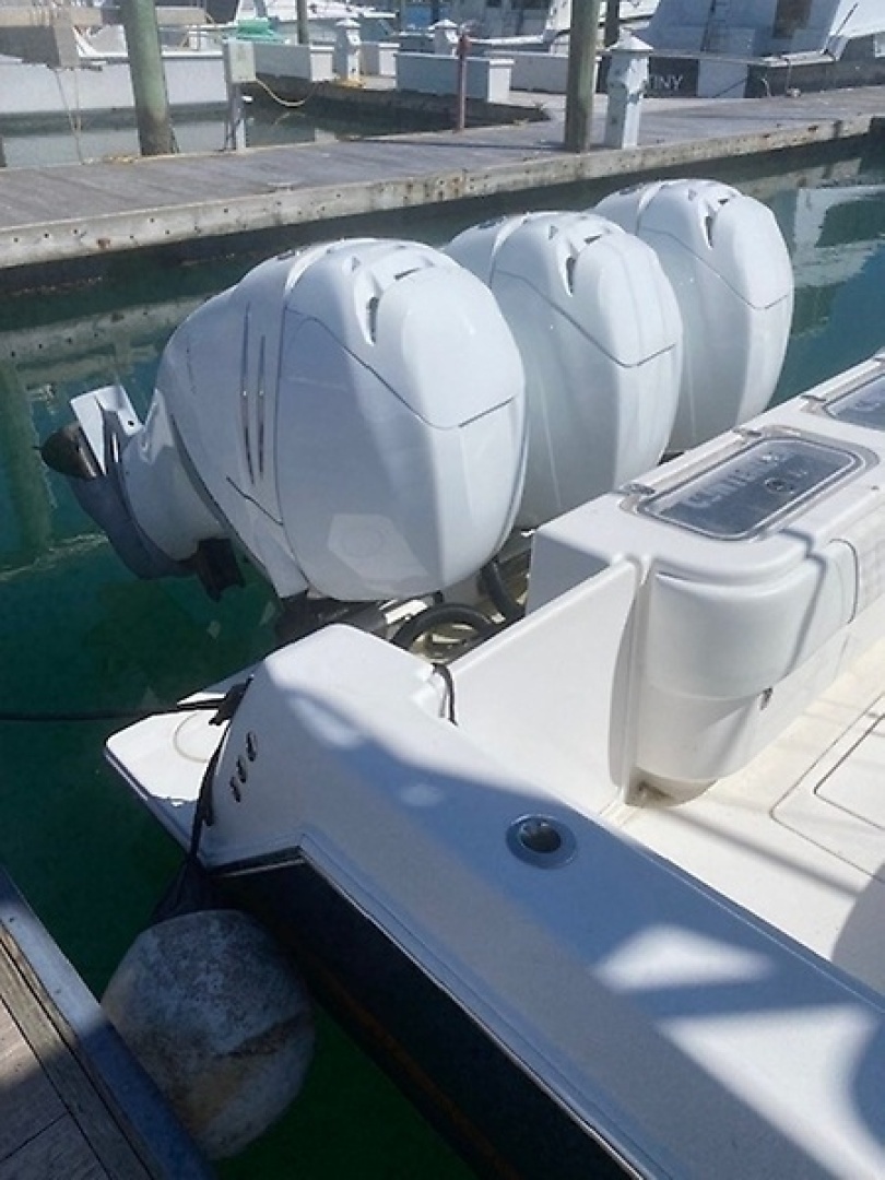 This offshore powerhouse is driven by triple Mercury 350s with approx. 750 hours, and it’s stacked with the premium options everyone wants but rarely finds in one package.