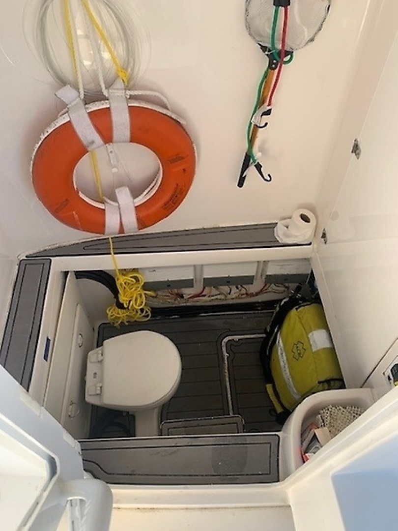 - All fish boxes, live wells, lockers custom Buch Blue gelcoat finished
