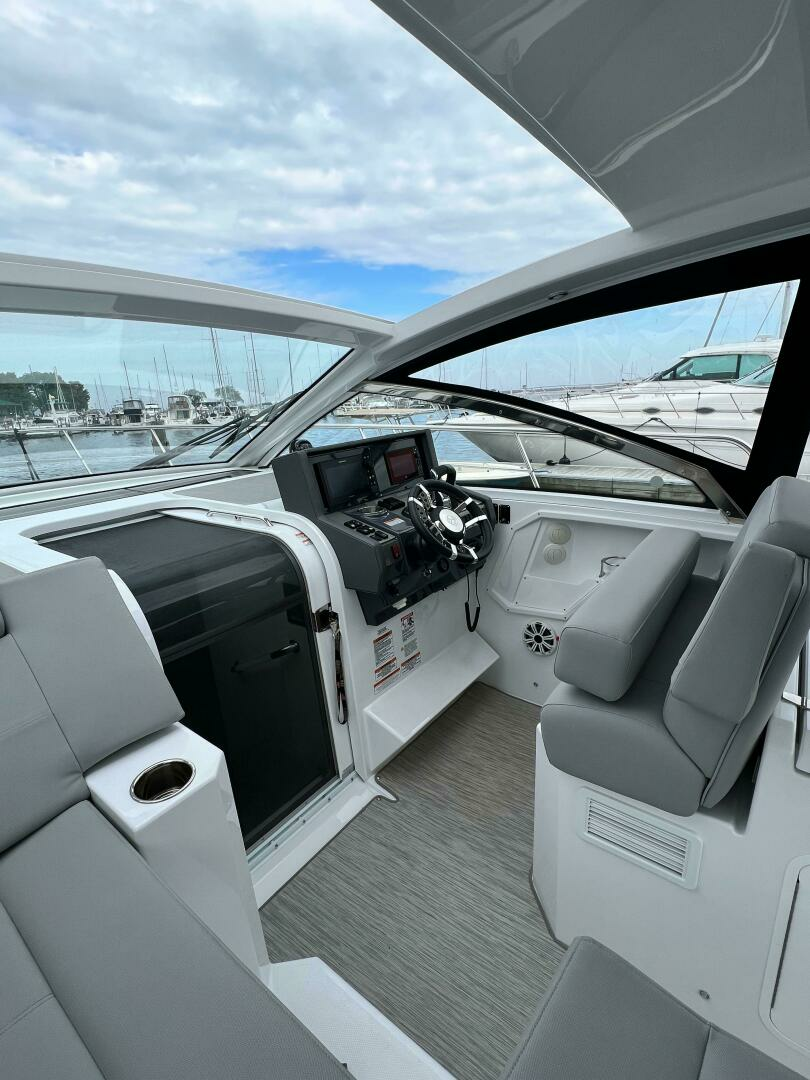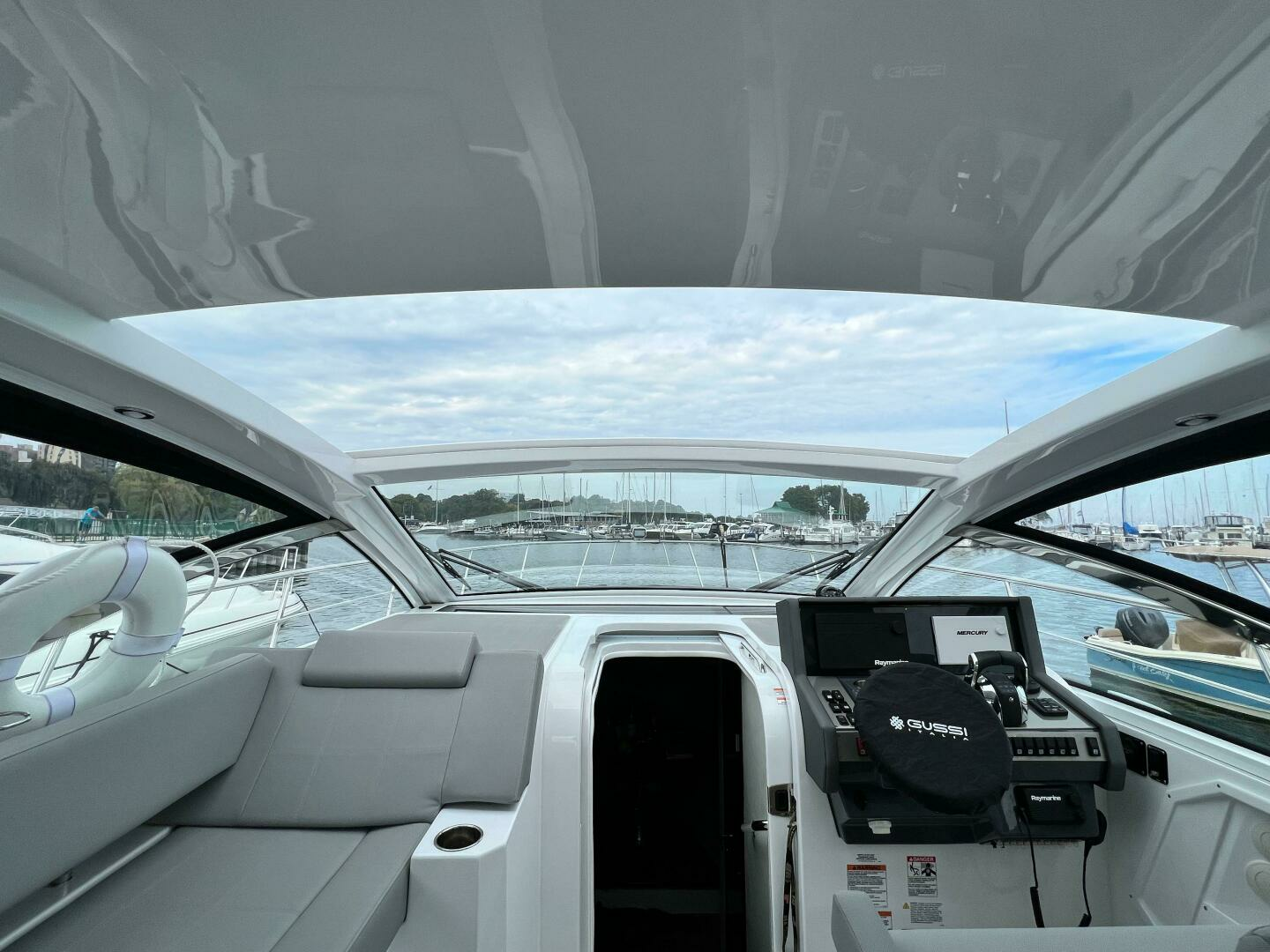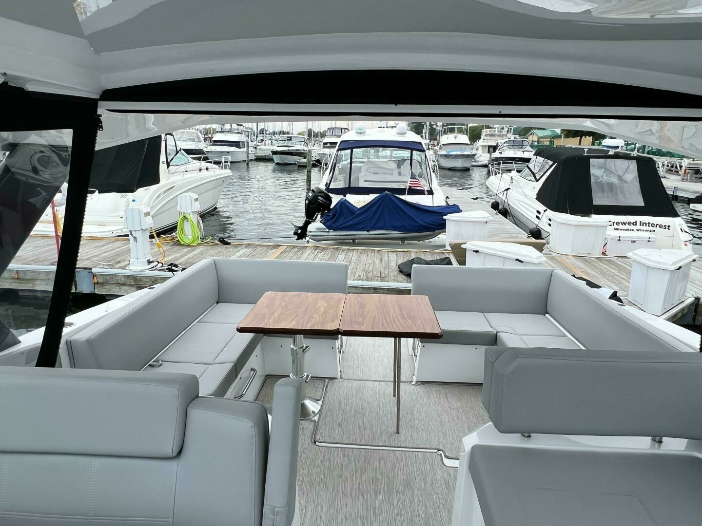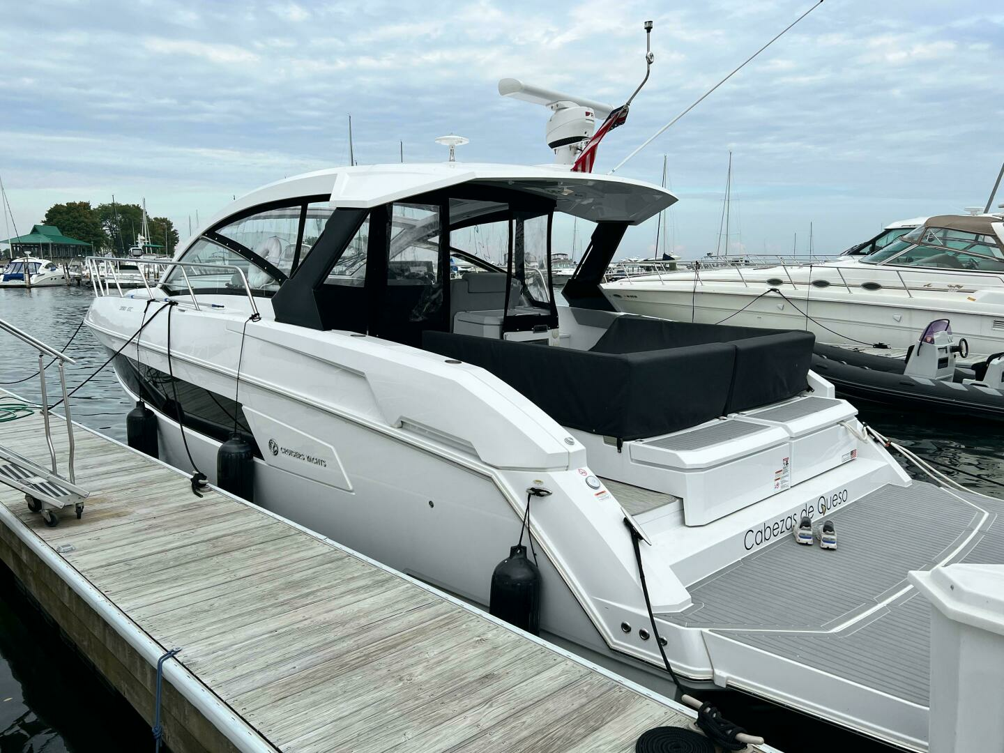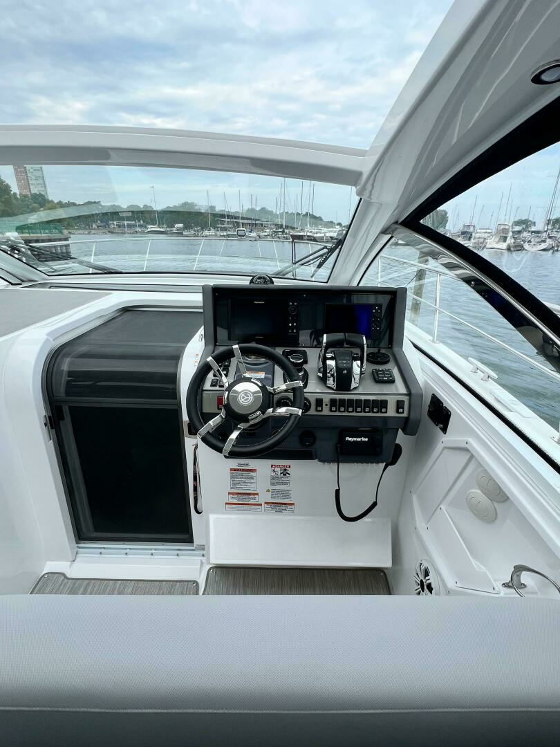 Welcome aboard this loaded, all FRESHWATER, like new Cruisers Yachts 390 EC. This vessel has been barely used with only about 70 hours on the engines and under 10 on the generator. It has lived its entire life on Lake Michigan and has been cared for with an open check book. This one of the most versatile boats in the 40ft range on the market. It sports adjustable stern seating that slides from port to starboard to create two different entertainment layouts, It has a full isinglass enclosure allowing you to be comfortable cruising in any weather and with ample room down below overnighting is no problem at all!
