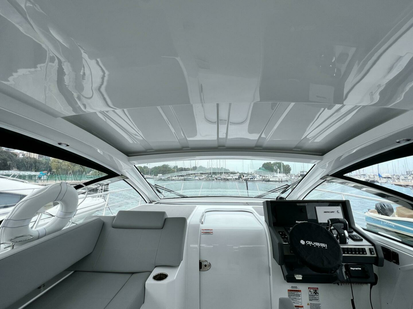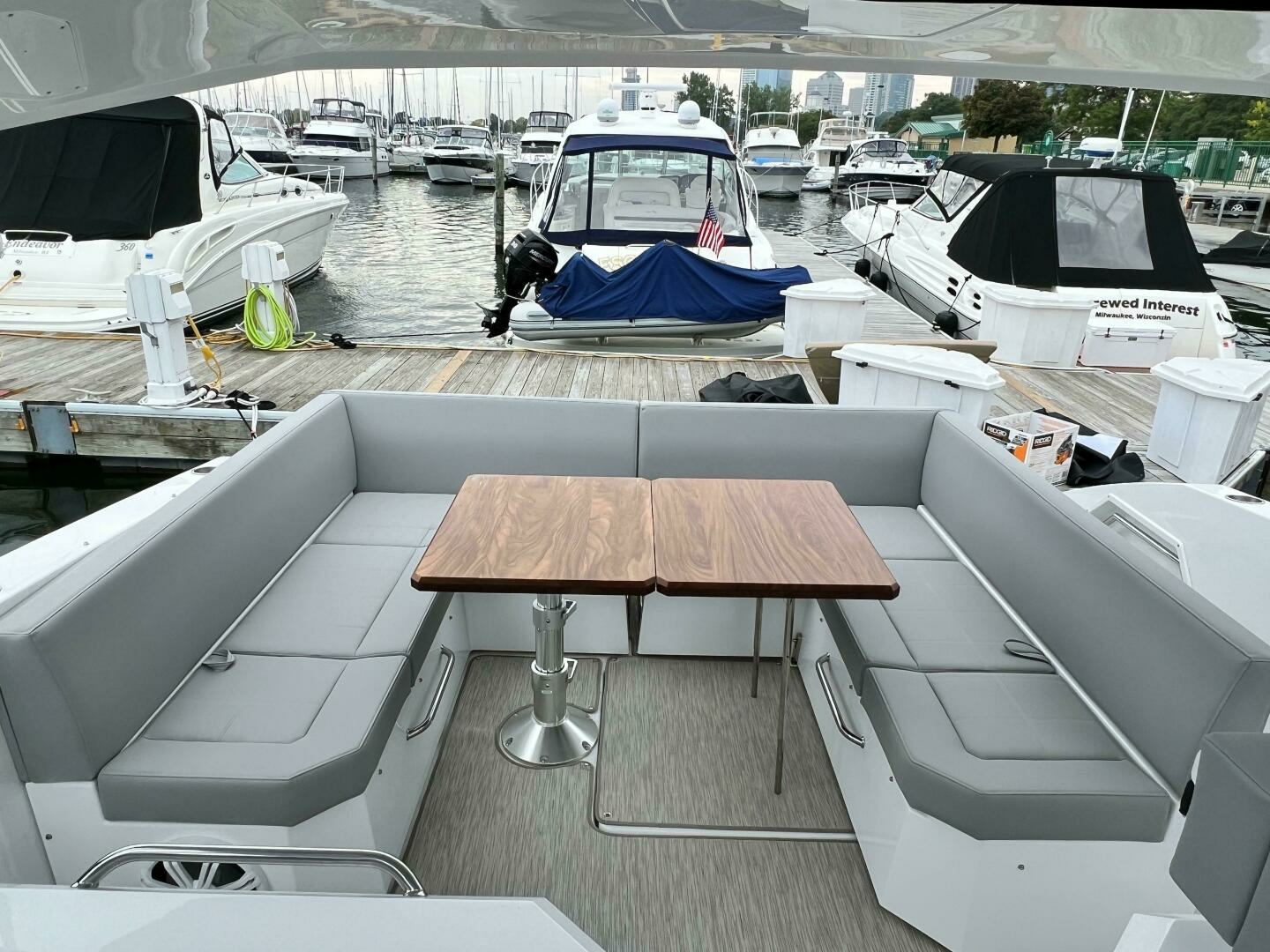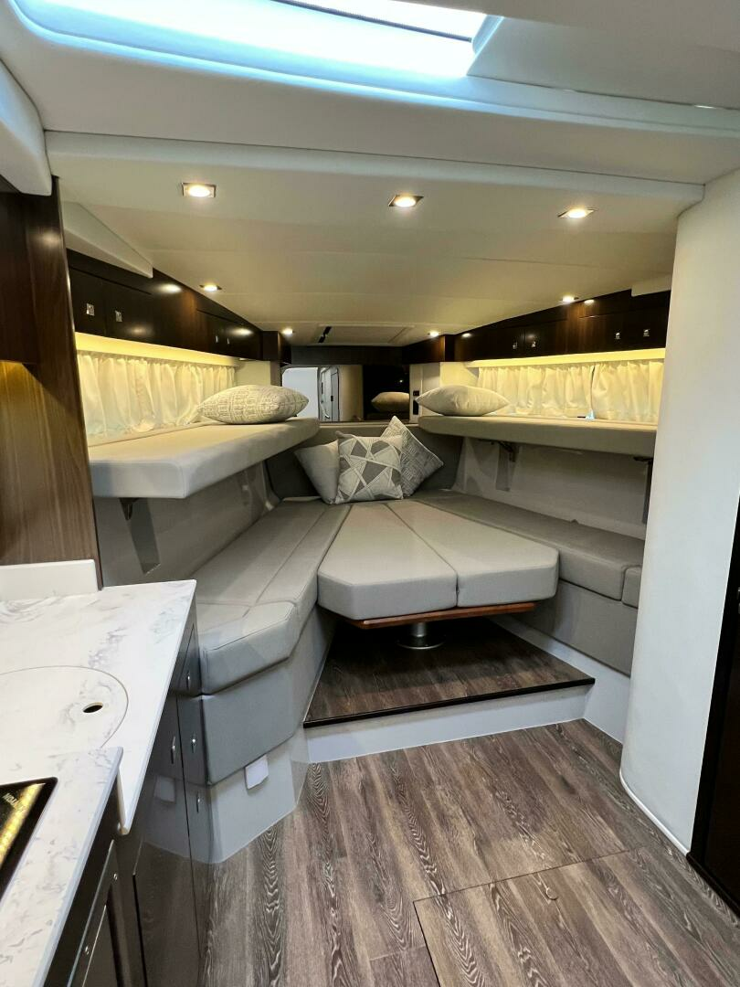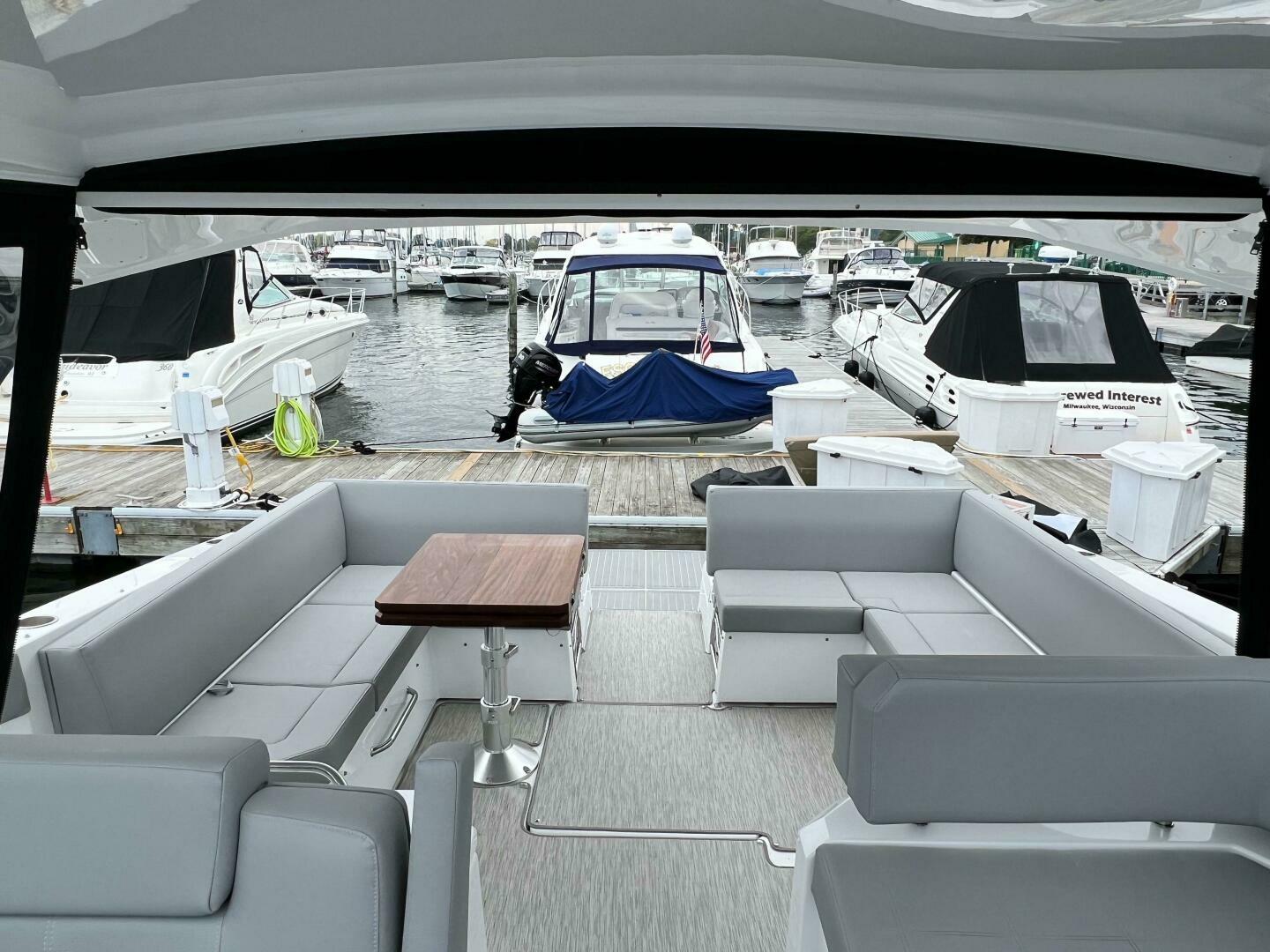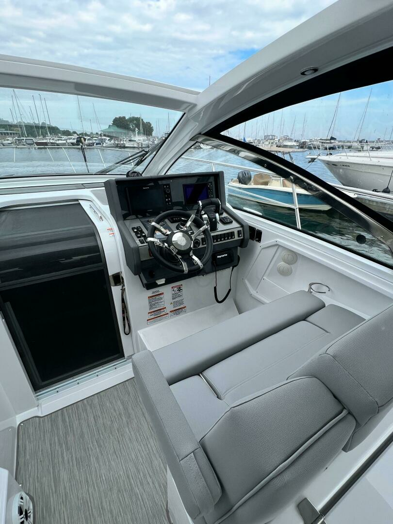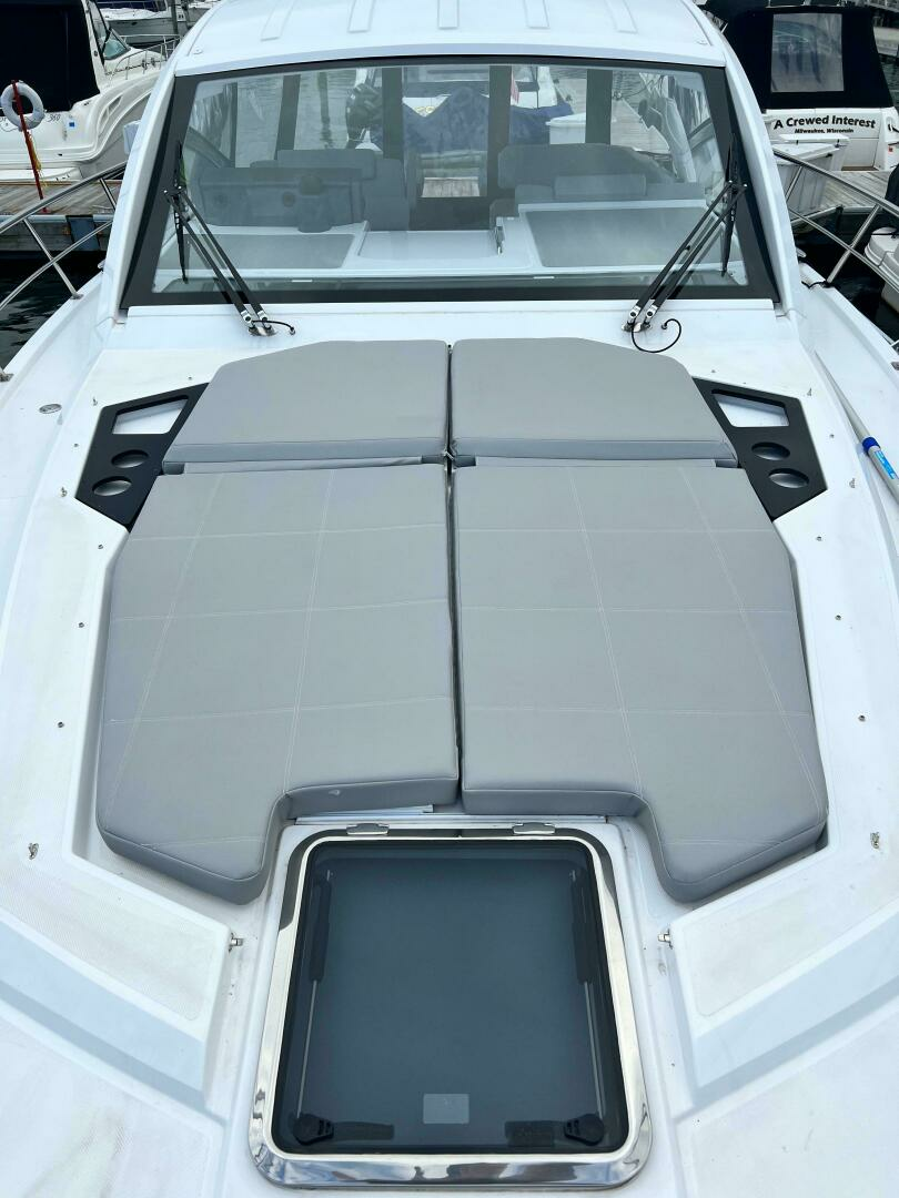 Welcome aboard this loaded, all FRESHWATER, like new Cruisers Yachts 390 EC. This vessel has been barely used with only about 70 hours on the engines and under 10 on the generator. It has lived its entire life on Lake Michigan and has been cared for with an open check book. This one of the most versatile boats in the 40ft range on the market. It sports adjustable stern seating that slides from port to starboard to create two different entertainment layouts, It has a full isinglass enclosure allowing you to be comfortable cruising in any weather and with ample room down below overnighting is no problem at all!