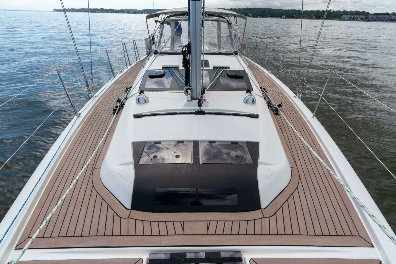 - Quantum Sails tri-radial 108% jib (2024) — 30.1 m², UV Sunbrella cover, telltales, draft stripes, window, bag