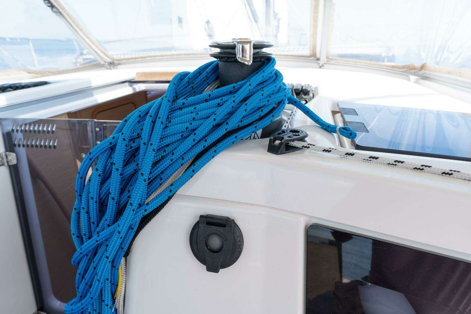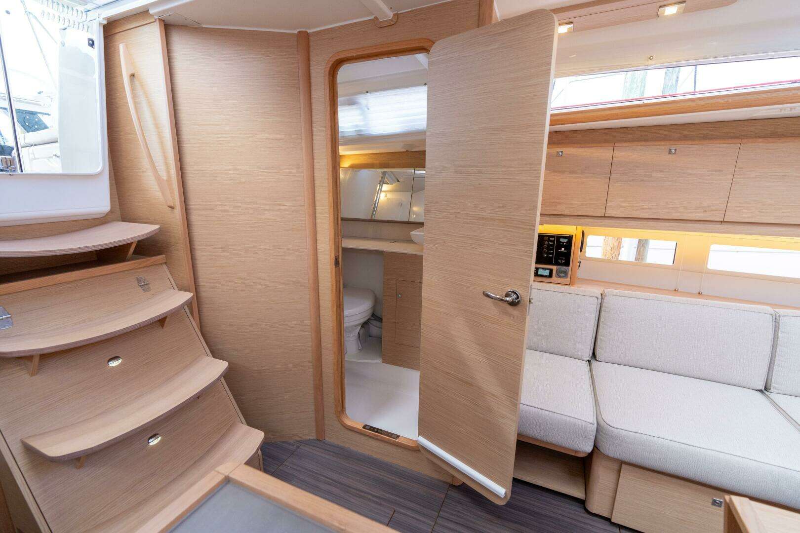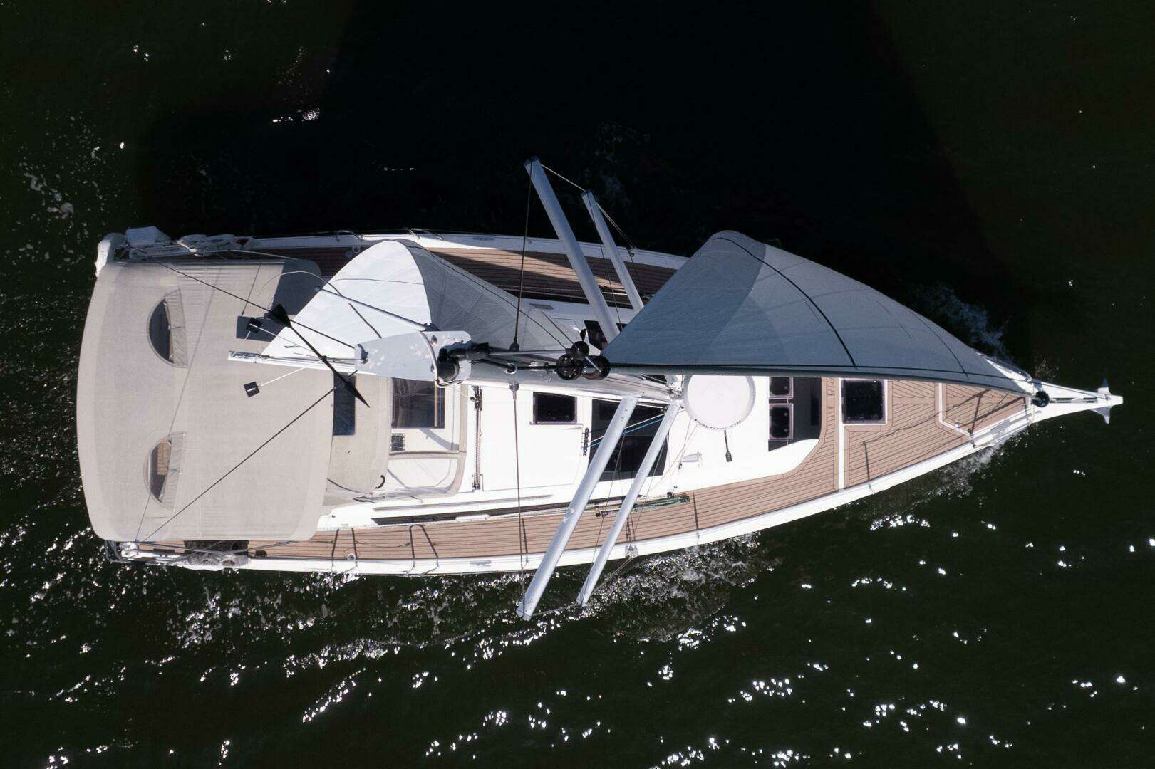 She is equipped with an In-Mast Furling Mainsail System, providing effortless sail handling and simple reefing directly from the cockpit. All major sail controls are led aft to the helm for single-handed sailing, a major custom upgrade that enhances safety, ease, and confidence while underway.