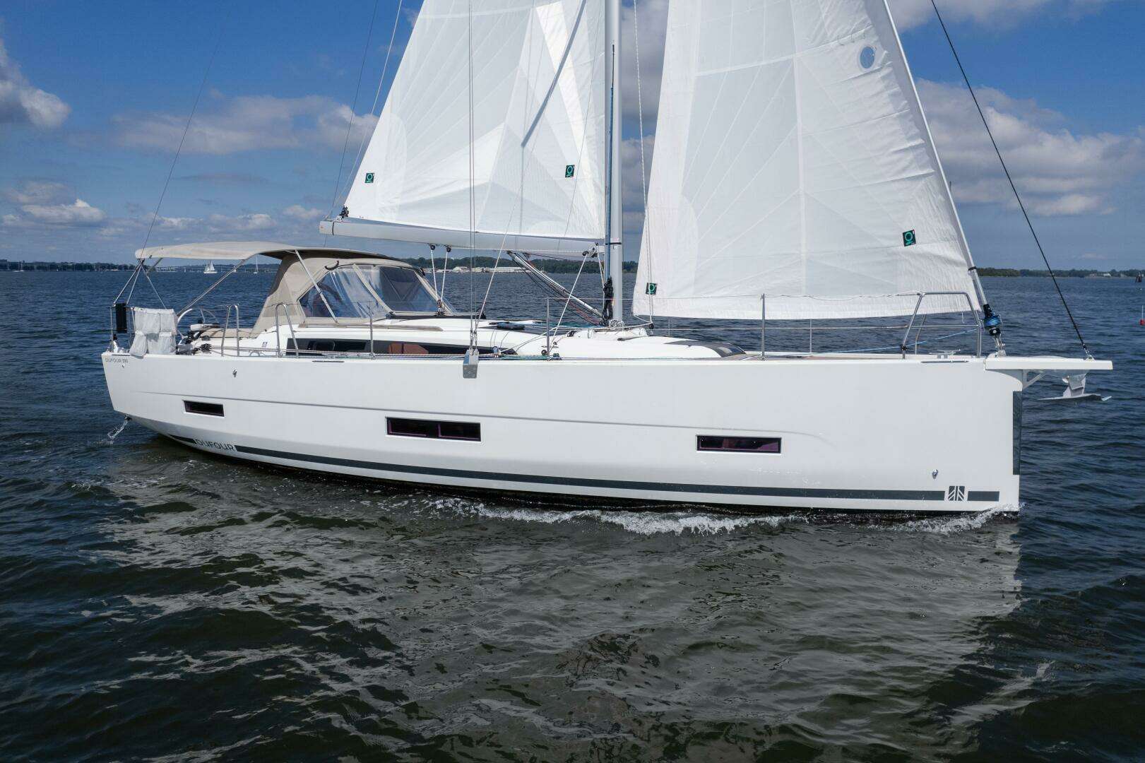 This 2023 Dufour 390 presents a rare opportunity to acquire a late-model, exceptionally outfitted performance cruiser that balances comfort, quality, and sailing performance. Ordered with an extensive factory and dealer upgrade package, then thoughtfully refined with custom modifications and premium sail inventory, she stands out from comparable offerings. With her two-cabin, one-head layout, large cockpit-accessible storage locker, and upgraded power systems, she is equally at home on extended cruising adventures or coastal passages.