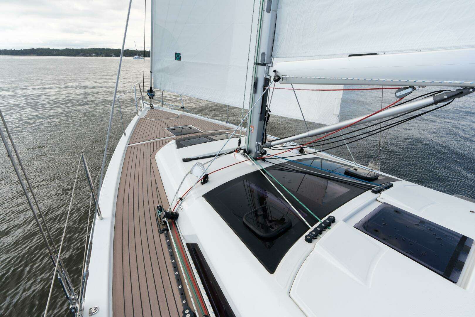 - Adjustable mainsail traveler on coachroof