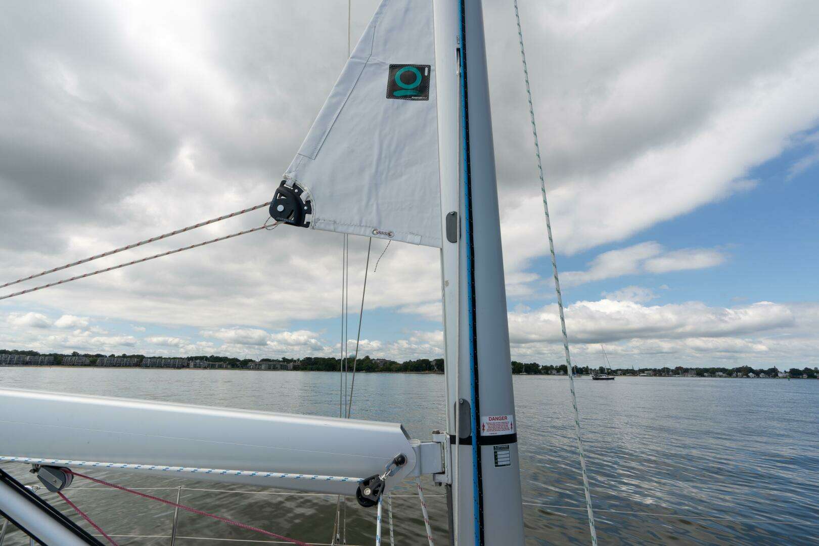 - Quantum Sails tri-radial mainsail (2024) — 33.1 m², optimized roach, UV clew cover, Rutgerson clew block, draft stripes, leech cord, bag