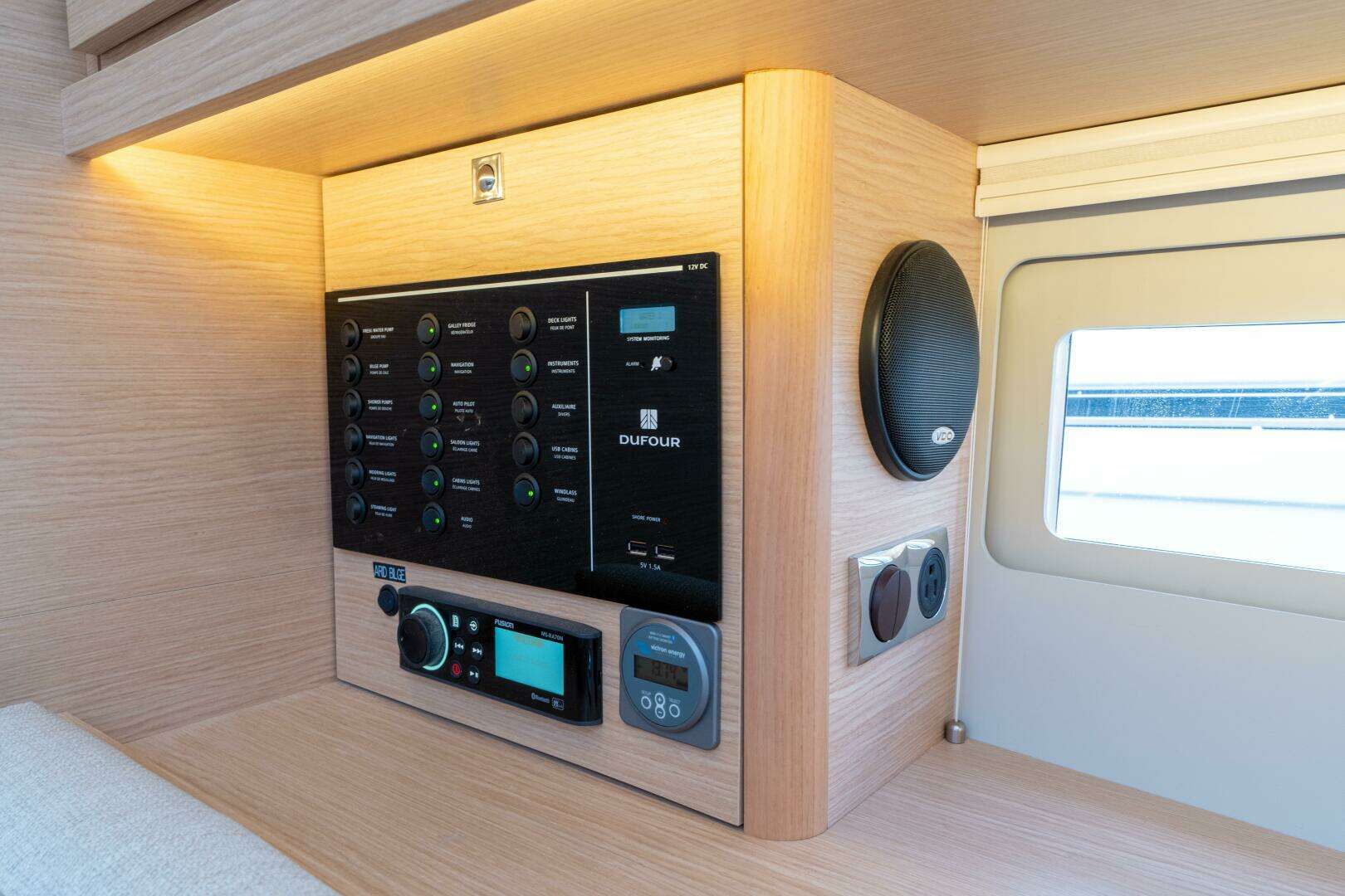 - Fusion stereo head unit with Bluetooth/USB + two cockpit speakers
