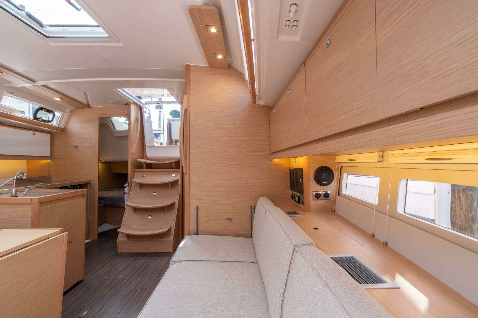 - Forward owner’s cabin with island berth and abundant storage